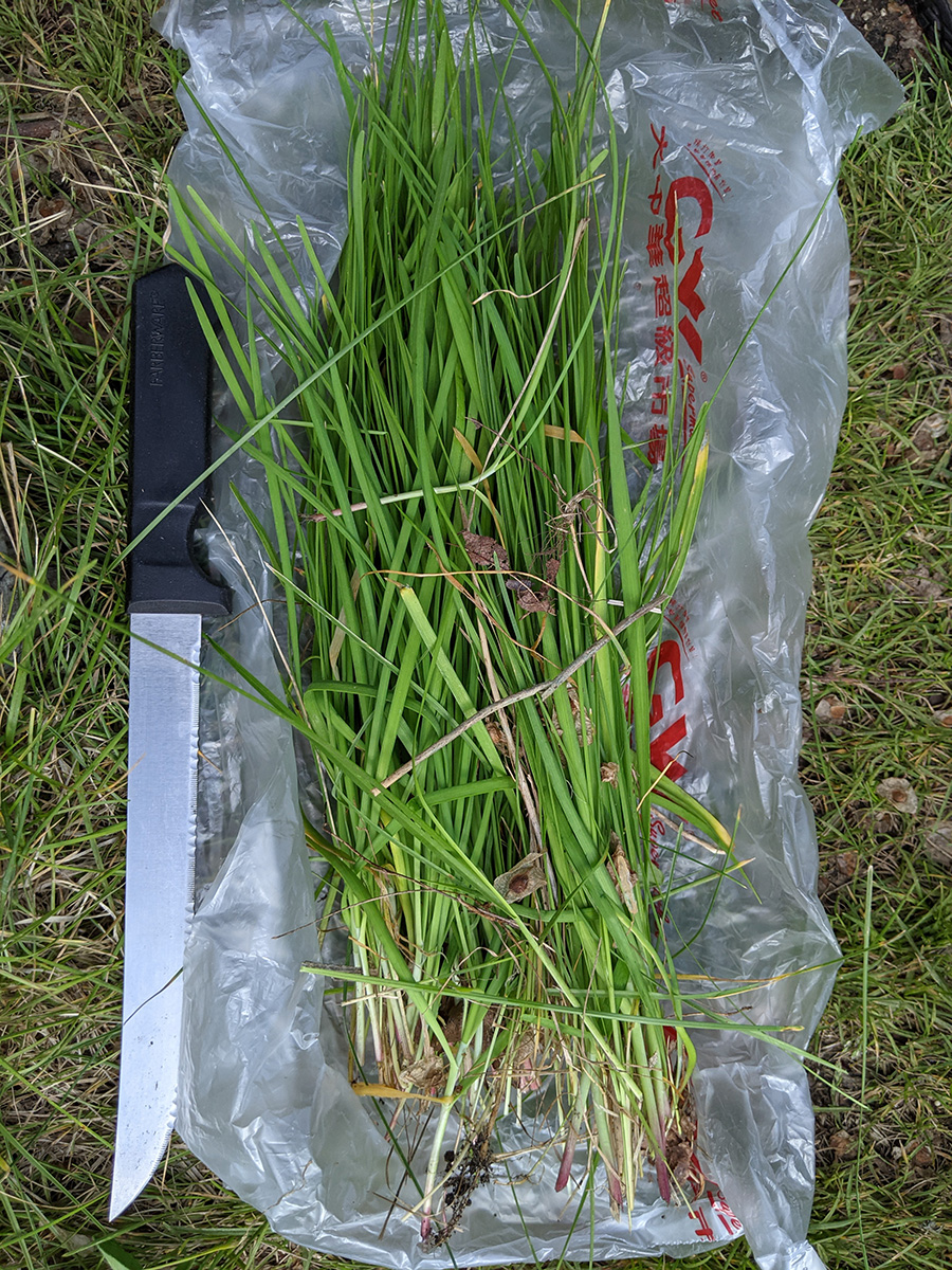 i stopped by the community garden before going home, to harvest some garlic chives for my yangbaechu kimchi recipe. there was a lot of people there, but everyone was so busy, nobody greeted me as i came into the garden with my motorcycle helmet. i took out a long bread knife from my bag and cut a bunch of garlic chives from the southeastern corner. i finally got home by 4pm.