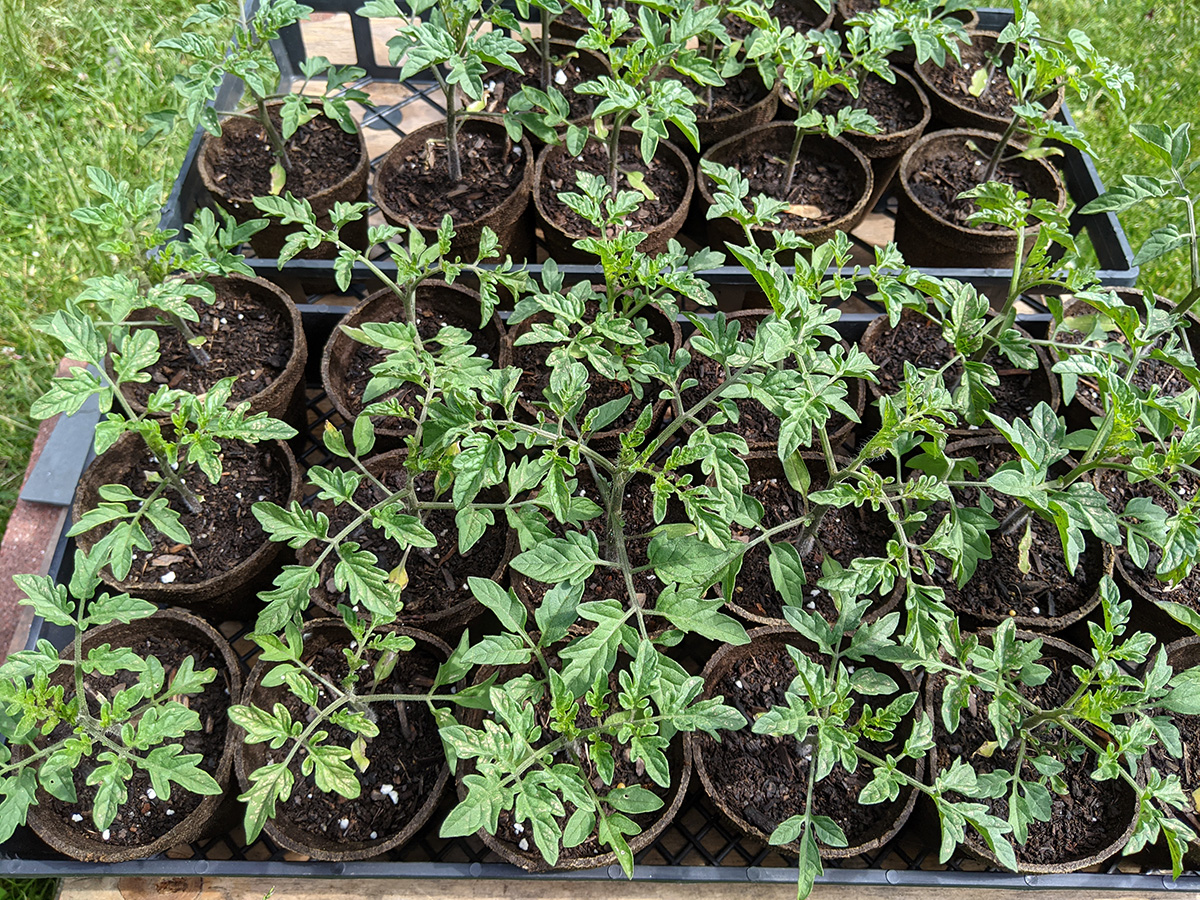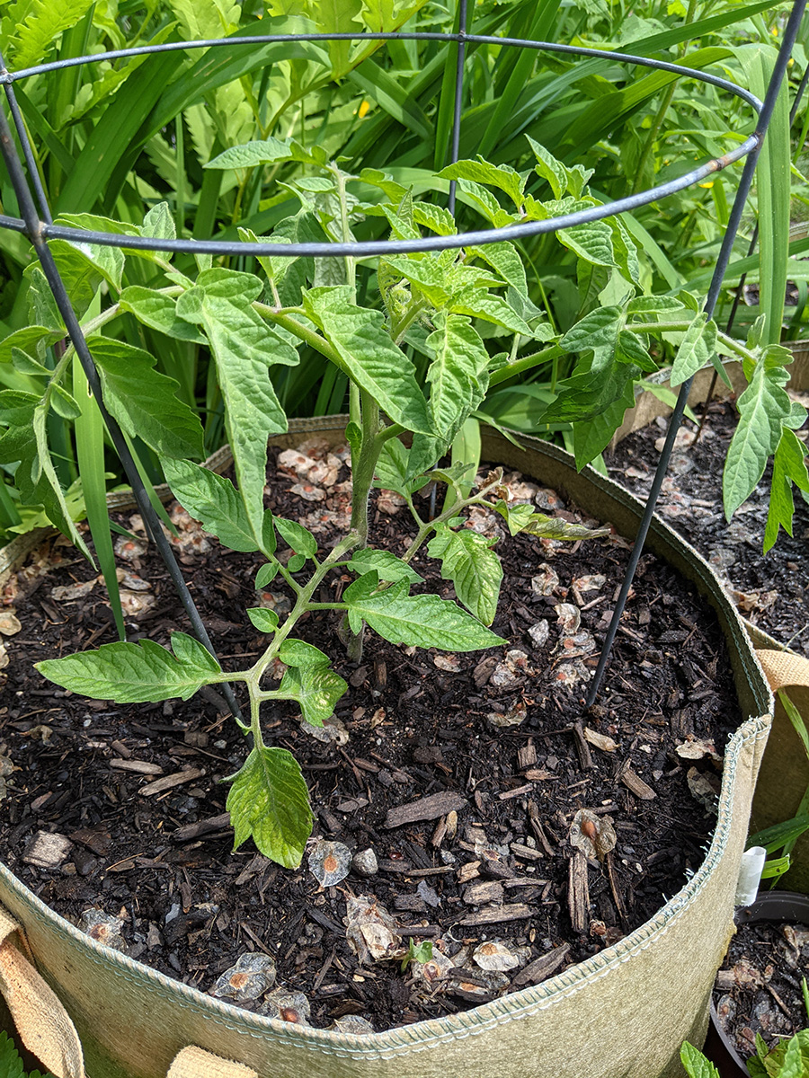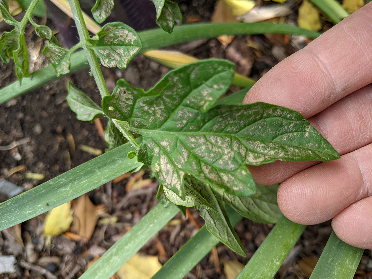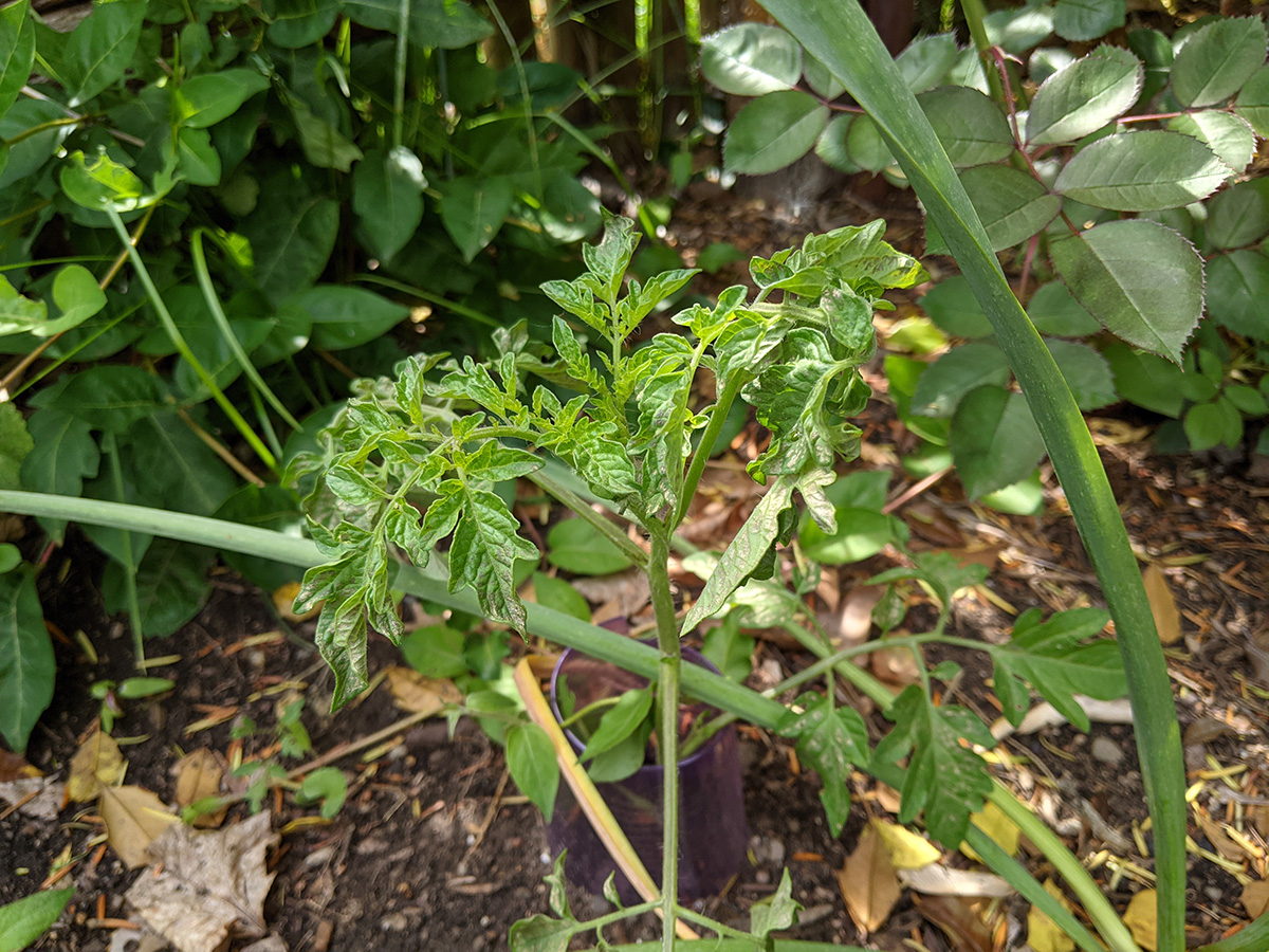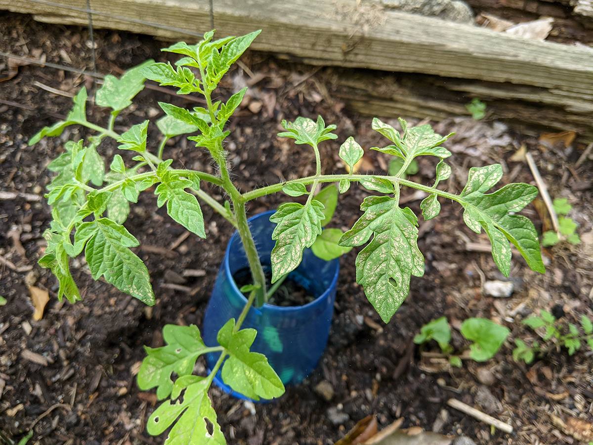 while doing a cursory backyard inspection, i noticed that a lot of our tomatoes have "dead" spots on the leaves. at first i thought it was fertilizer burn, but it was showing up everywhere, even in the jiffy pot seedlings where we didn't add any fertilizer. could it be disease? or maybe overwatering from all that rain? later in the evening i did some research, and it's possibly sun scorch, a combination of wet leaves and sunshines that act as a magnifying glass. however, it wasn't sunny at all this past weekend, just rainy, so could the leaves still get scorched?