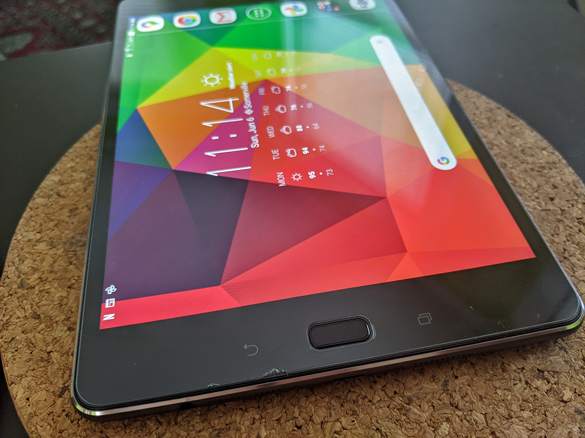 i got my new screen protector for my ASUS zenpad Z8s on thursday. it didn't take long for me to crack it. i accidentally dropped my macbook pro on top of my tablet. the screen protector probably saved me from having a cracked screen, but i managed to chip the bottom edge of the tempered glass and there's also a micro-crack that will eventually turn into a macro-crack. i thought about replacing it (i do have a spare protector) but figured i could live with it for the time being. it doesn't affect the screen at all, just when i press the home button i can feel the rough broken edges of the protector.