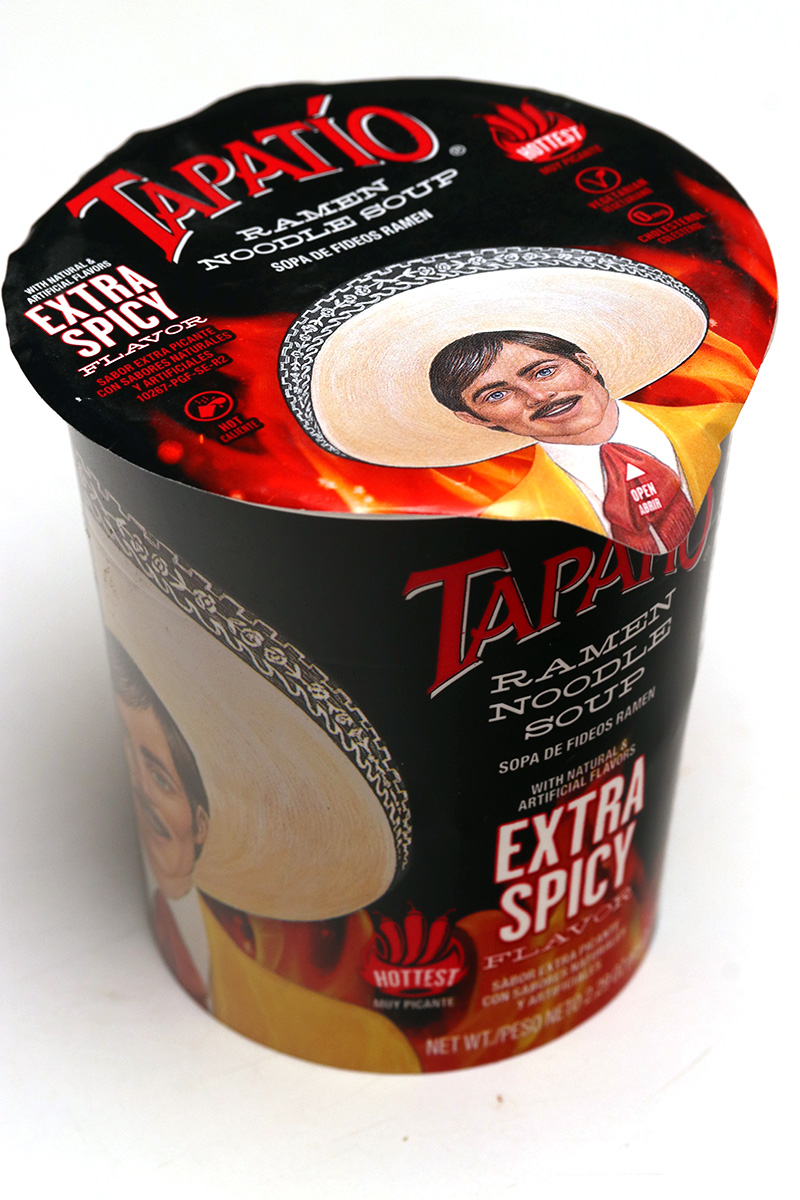 wanting to have something for a snack, i boiled some water and had a tapatÃo extra spicy instant noodle soup. i bought this at the dollar store, never seen this brand before, surprised to find mexican ramen of all things. it's advertised as "extra spicy" and "hottest" but no hotter than your normal spicy doritos. it wasn't that good, and the list of artificial ingredients made it even more unappetizing. the maruchan chicken instant noodle soup is much better, and they sell those at the dollar store 3 for a $1.