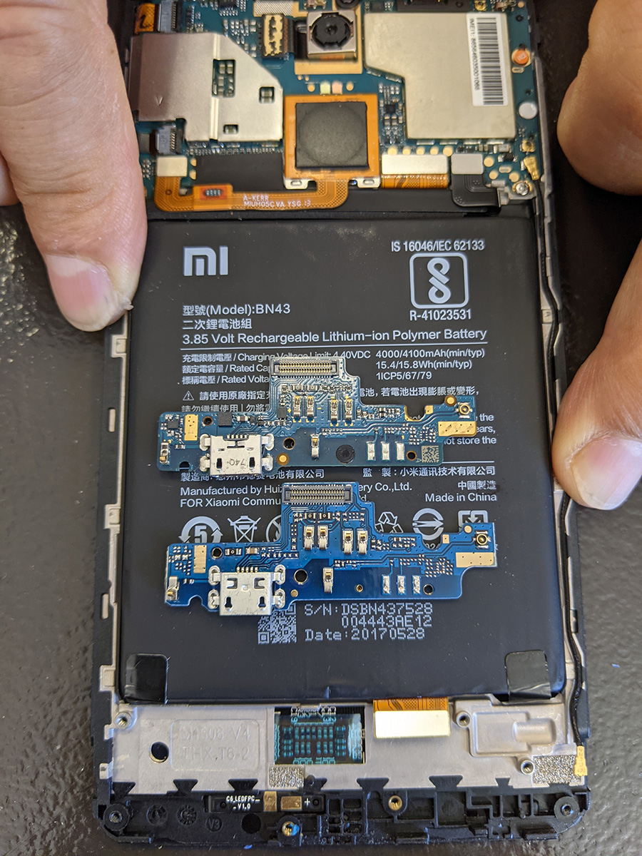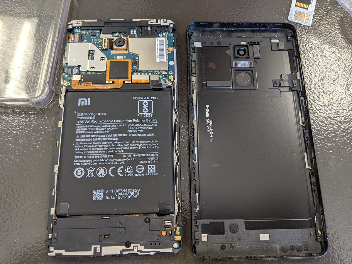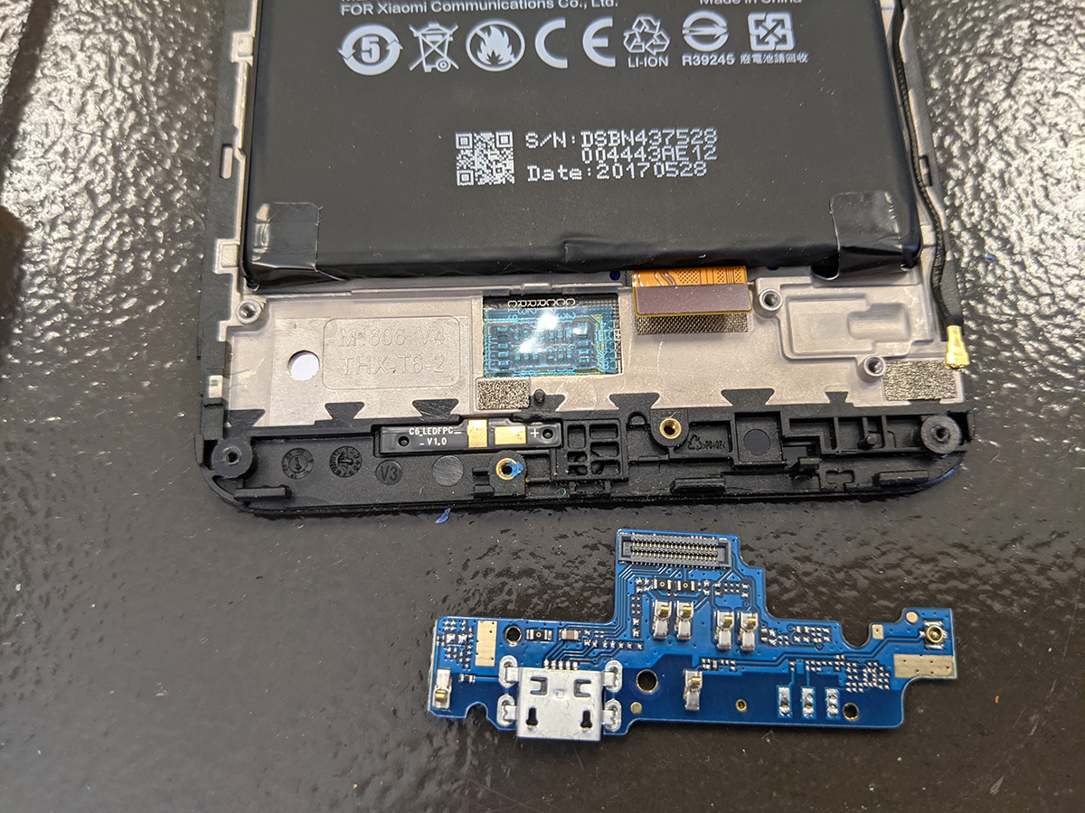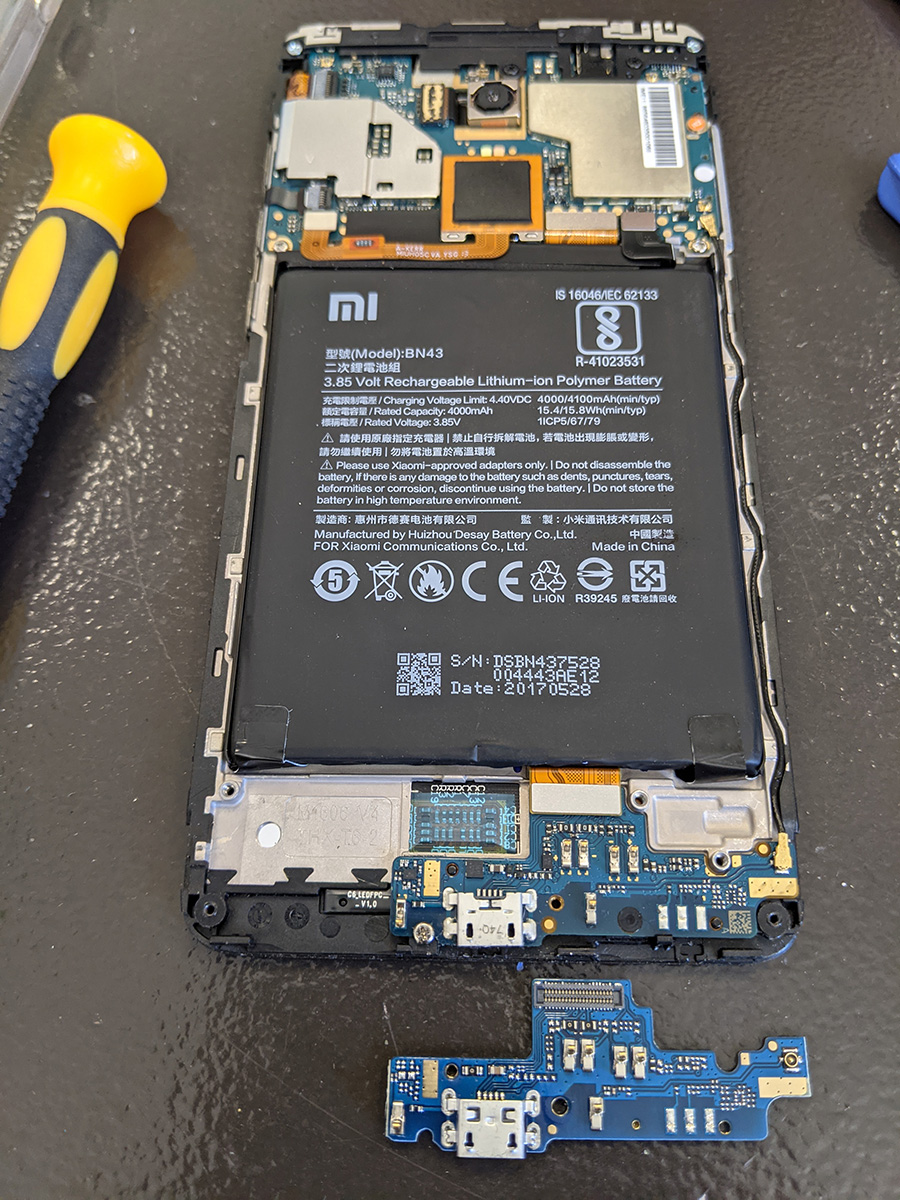the hardest part of the xiaomi repair was opening up the phone. it took my father and i some careful prying with plastic tools to finally get the backcover off. once that was done the rest of was easy, just remove some screws, take off the speakers board, unhook the old charge port board, and swap it out with the new one. after that the phone was good as new, easily charging once more.