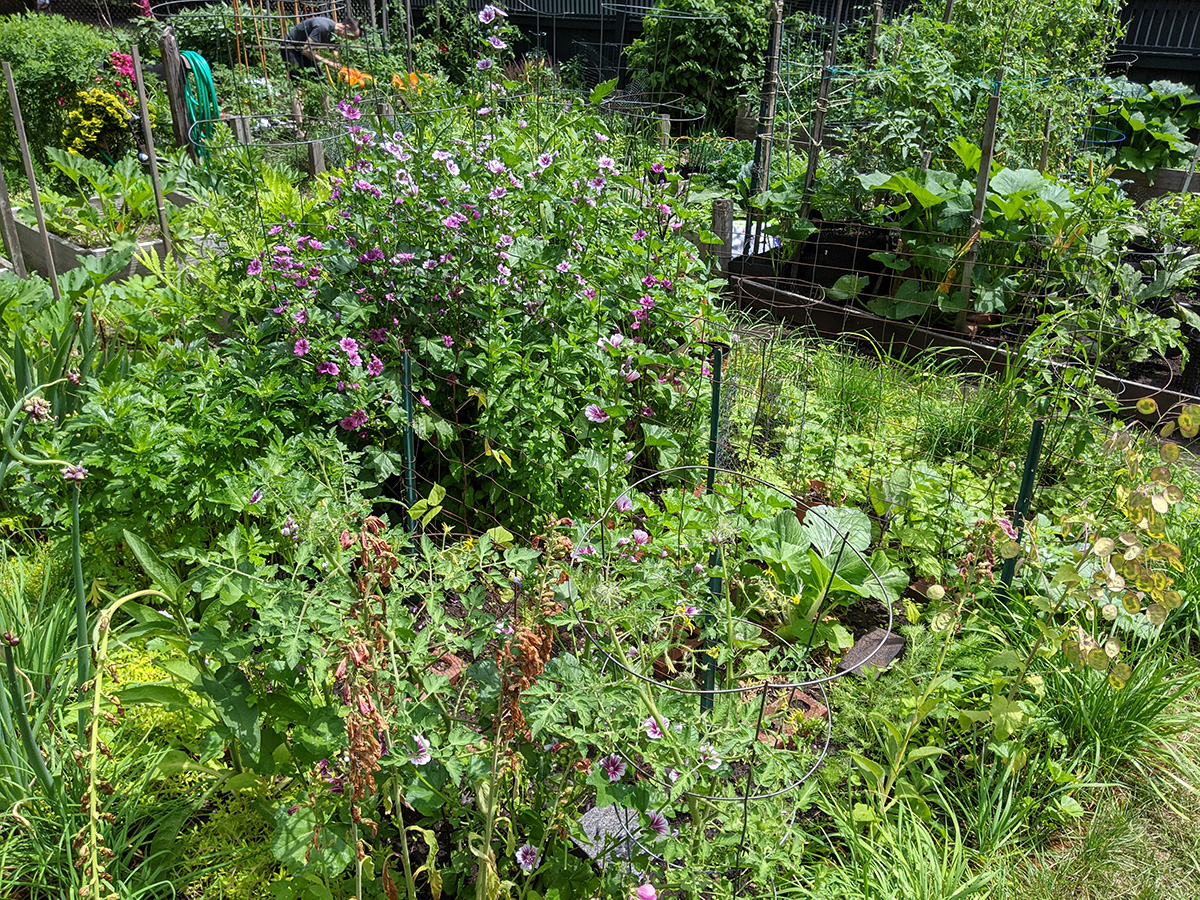 despite the chance of rain in the late afternoon, i went down to the community garden this morning to water my plants anyway, in case it doesn't rain, which has been known to happen. if there's anything i've learned about new england, the weather here simply can't be trusted.