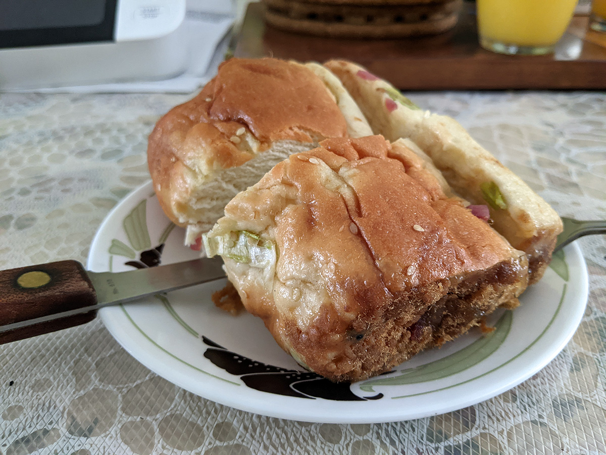 i went back inside for lunch - some taiwanese pastry my 2nd aunt had bought from chinatown, along with some cherries and figs.