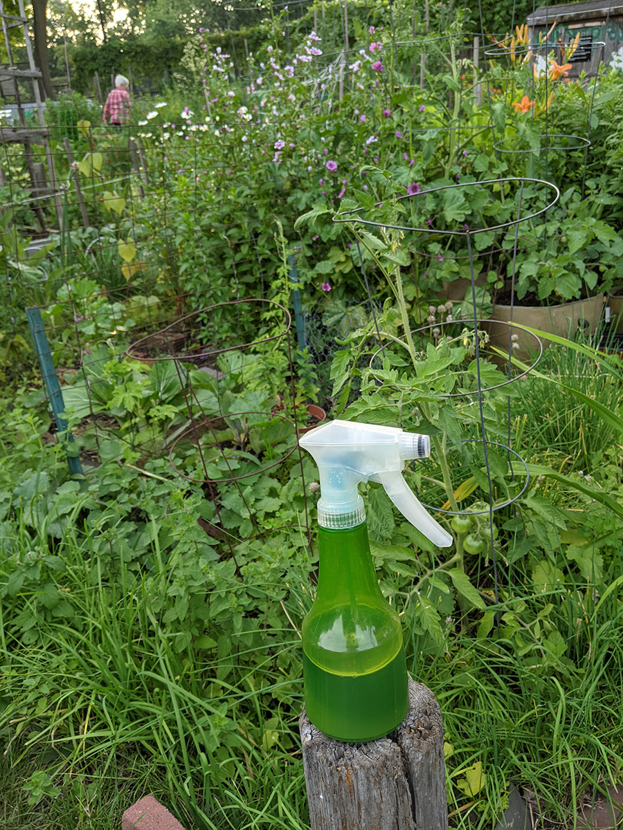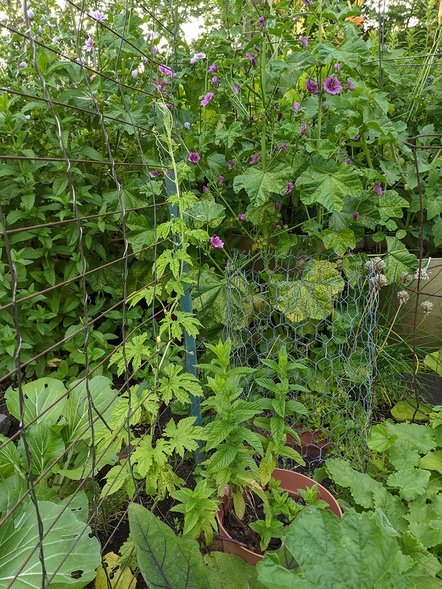rest of the time, i was inspecting the squash plants for vine borer eggs (i always seem to find some) and i sprayed the hollyhocks with a copper solution, hoping to stop the spread of rust disease affecting the leaves.