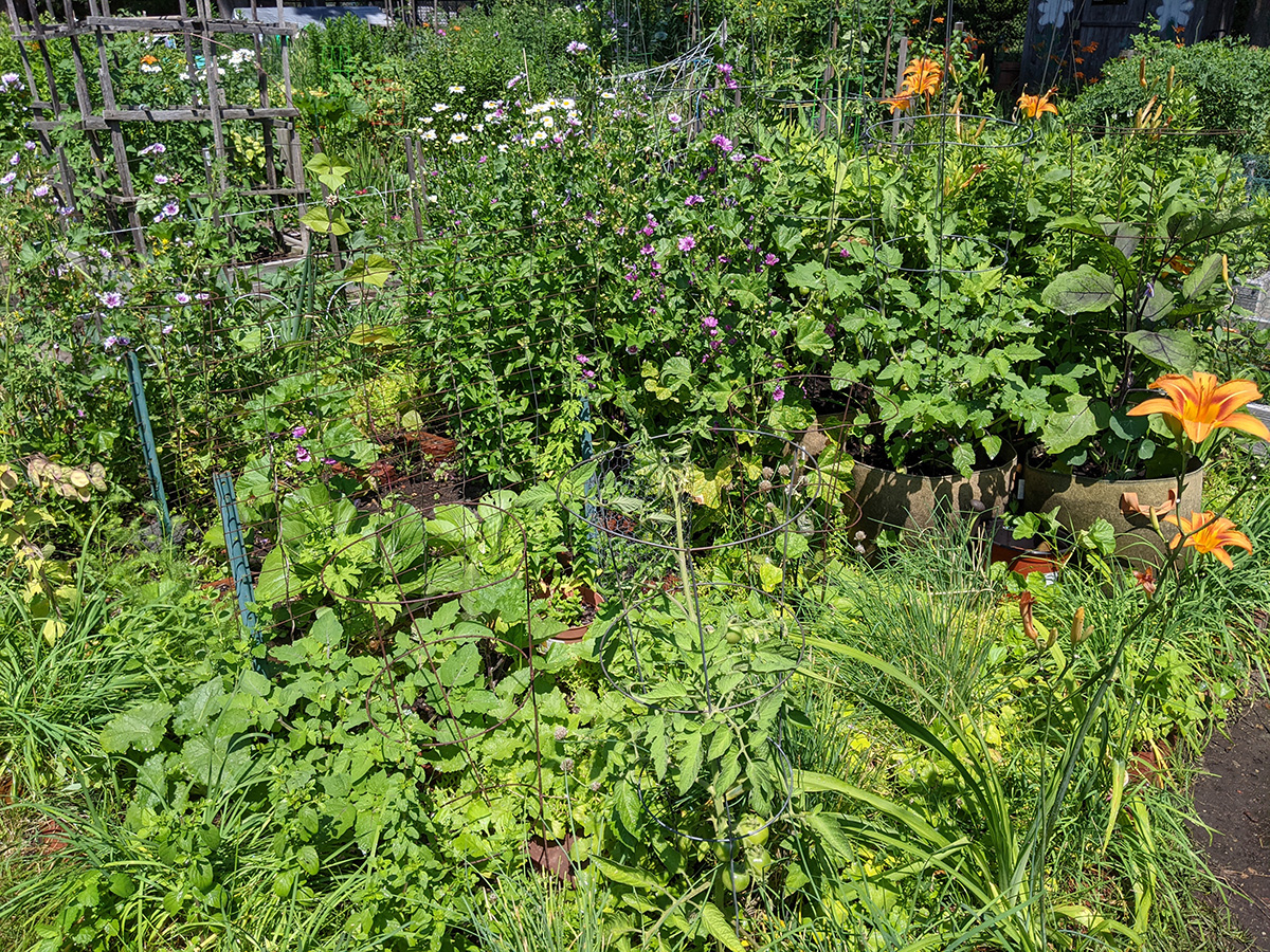 there wasn't time to rest this morning as i had errands to run. first i went down to the community garden to water my plants. once again, lynn was there as well tending to her garden. i ended up using the other hose. afterwards we chatted about our plots. it was hot, we were both sweating, and she told me she better get back to her gardening before she burned up.
