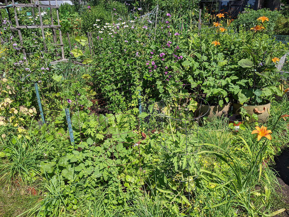 i went down to the community garden to water my plants before it got super hot. it was 10:30am and the temperature was already sweltering, air so humid i understood what people mean when they say "soupy." i watered and quickly returned home to take a shower to rinse off all that outdoor stickiness.