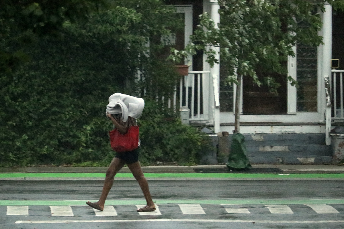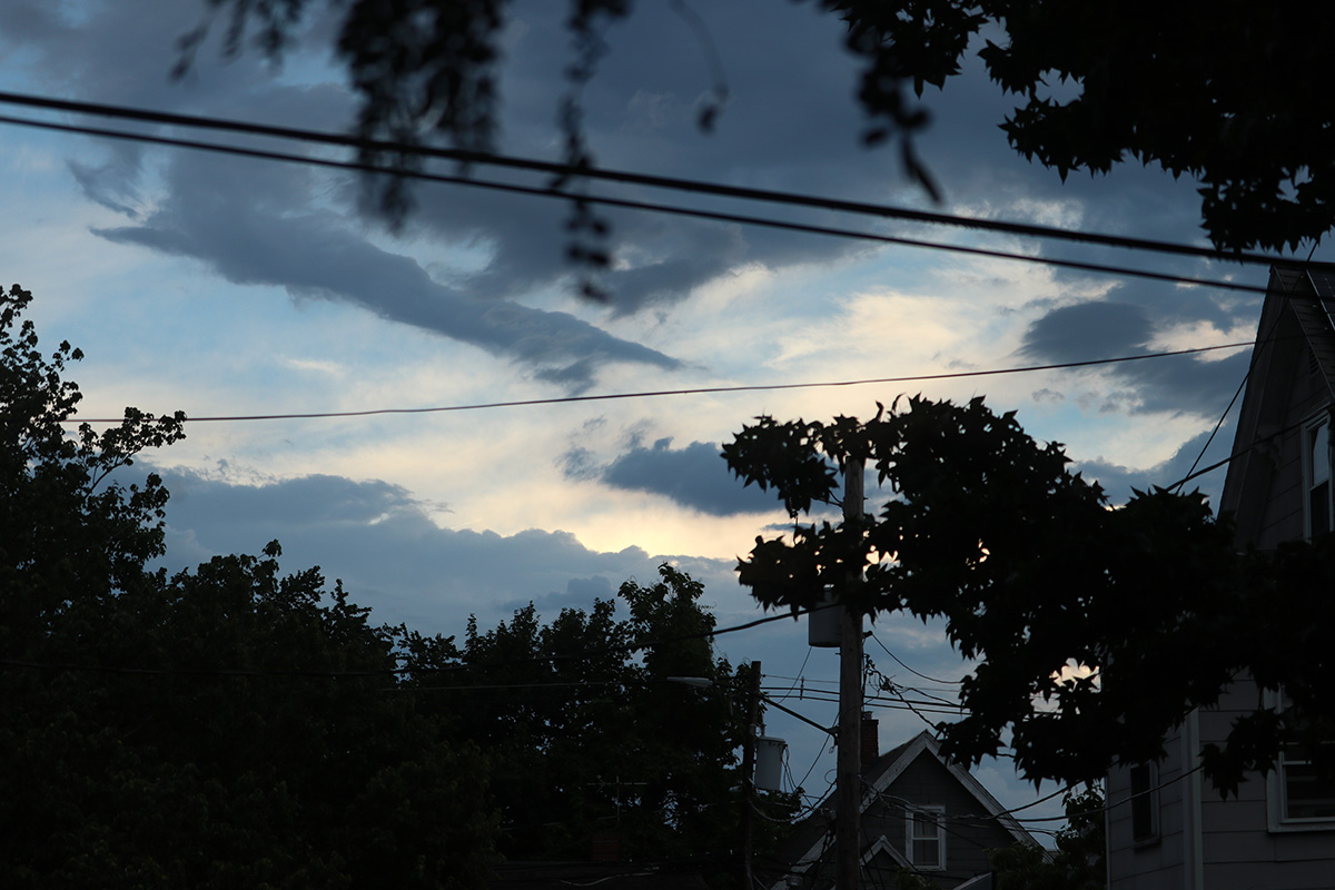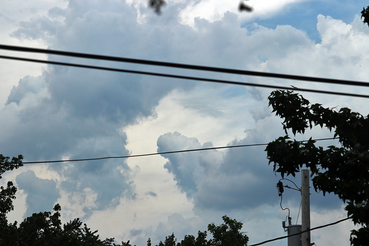 i waited by the window, still watching the sky darken with ominous clouds. when the storm did come, it was brief, just a band, the trees swayed, trash was being blown around in the streets, then a strong downpour that lasted just minutes. after that the sky started to clear up again.