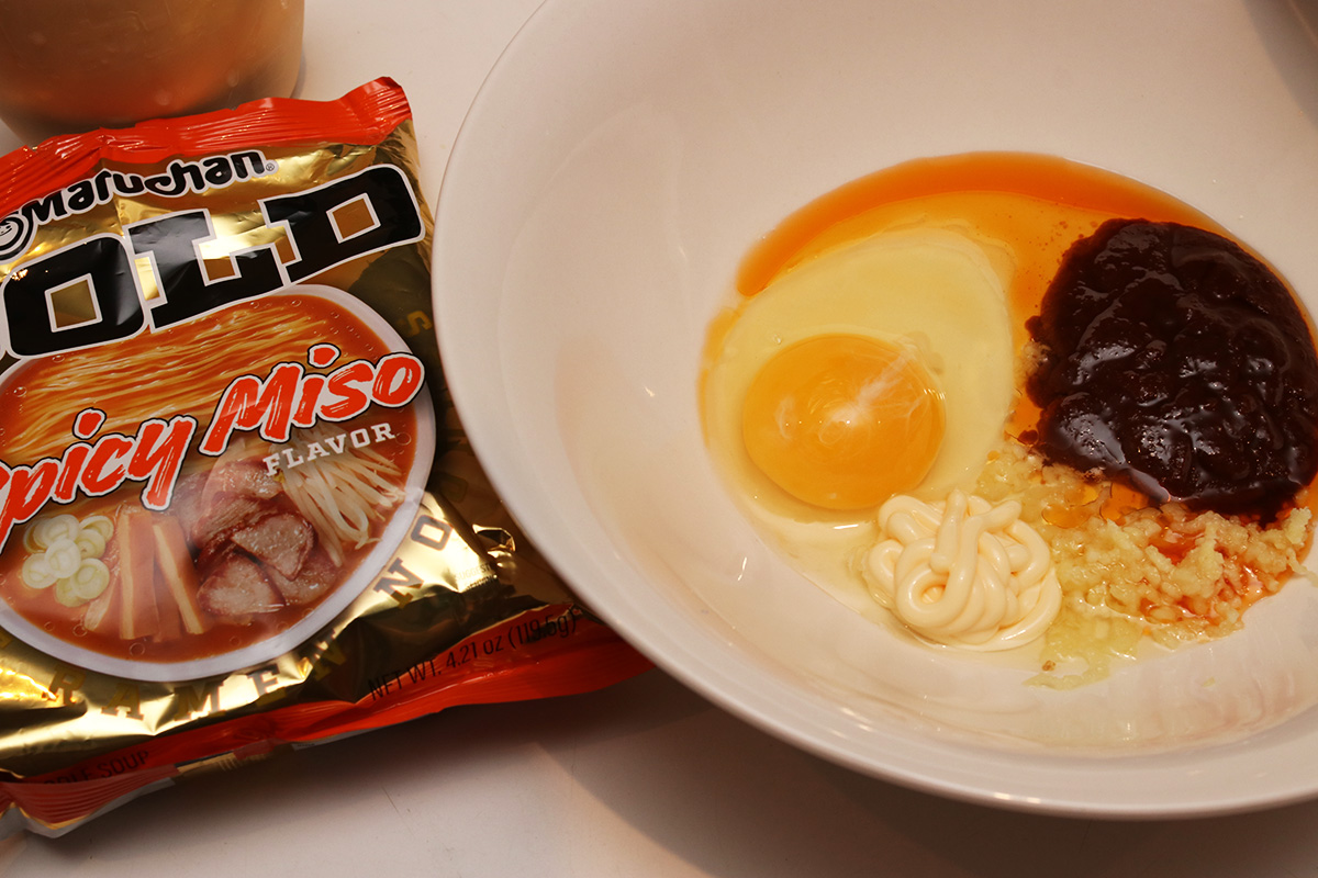 instead of a salad (i was neither in the mood nor did i have the time), i made a quick dinner from the maruchan spicy miso gold ramen that i bought a while back. i never had it before, i was curious about the taste. like before, i added a raw egg, some kewpie mayo, and some minced garlic to make a savory broth. the final result didn't look very appetizing (i had some scallions but they were all expired) and it tasted okay at best. there was a strong processed flavors taste, the same taste i get from the maruchan instant cup of noodles. the additional ingredients disguised it bit but i could stay taste it. if i were to recommend an instant noodle, i'd say go with nongshim's shin ramyun instead, the more premium black version (with bone broth) if you can find it.