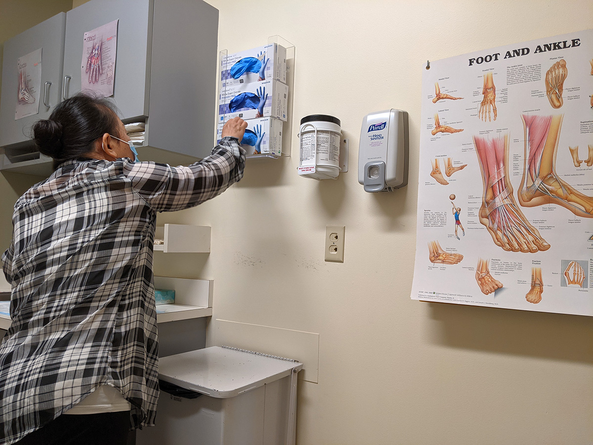 the thing to do now is just to monitor the toenail, make sure the discoloration doesn't spread, or doesn't start showing up on the skin (in that case it's most likely skin cancer). my mother also told the doctor about other pains in her feet. one of the pain came from swelling, and the doctor told her she could remedy that by wearing compression socks (the doctor showed us she was actually wearing a pair herself). my mother also complained about pain in one of her big toe, which was due to an ingrown nail. the doctor helped her trim it back and my mother felt immediate relief afterwards (although she would've preferred the doctor to trim even more).