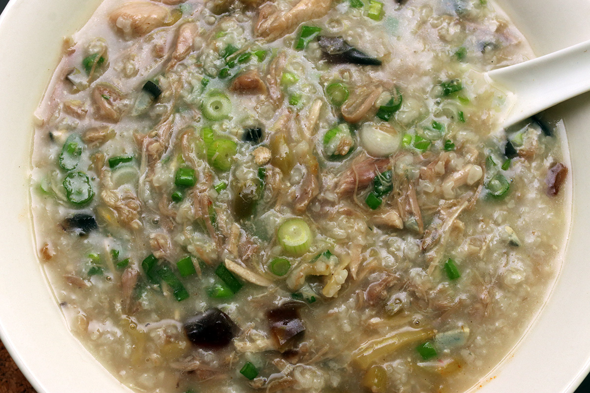 for dinner i reheated some congee from yesterday, and had a bowl of cherry as well.