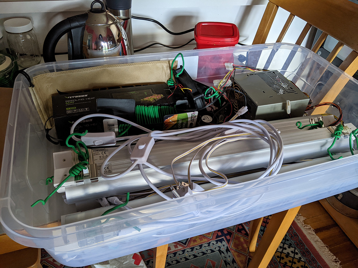 inside the target it was all nice and air-conditioned. i went in search of a long container storage for my 2ft led grow strip lights. there was one (hefty-brand with a latch-enclosure lid) that was exactly 24" long but i was afraid it was still too short. i ended up going with a longer (29" long) under-the-bed storage box (room essentials brand, $11).