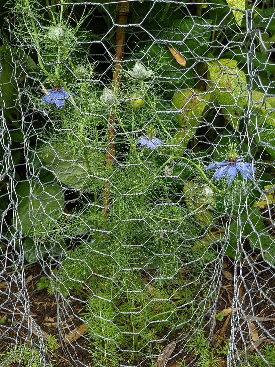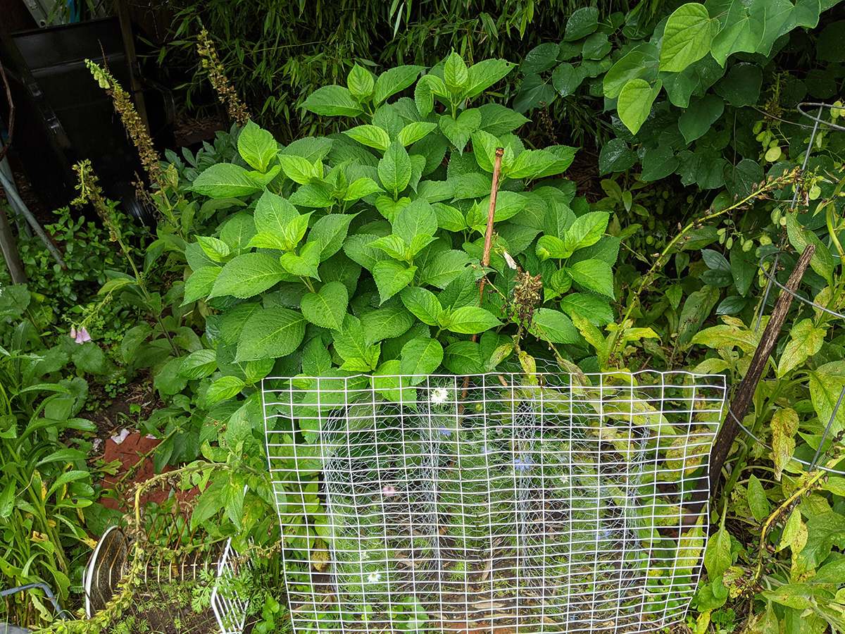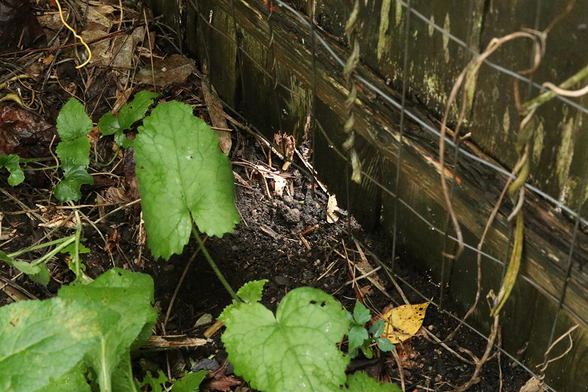 i found a new rabbit hole at the bottom of the southern fence, one of the few southern areas that hasn't been barricaded with buried fencing. there was also some wood damage, which makes me think it could also be a woodchuck, but the hole was too small. i scooped up a shovel full of dirt and patched up the hole but we need to keep an eye on it for future intrusions, otherwise we'll need to bury some fencing underneath there as well.