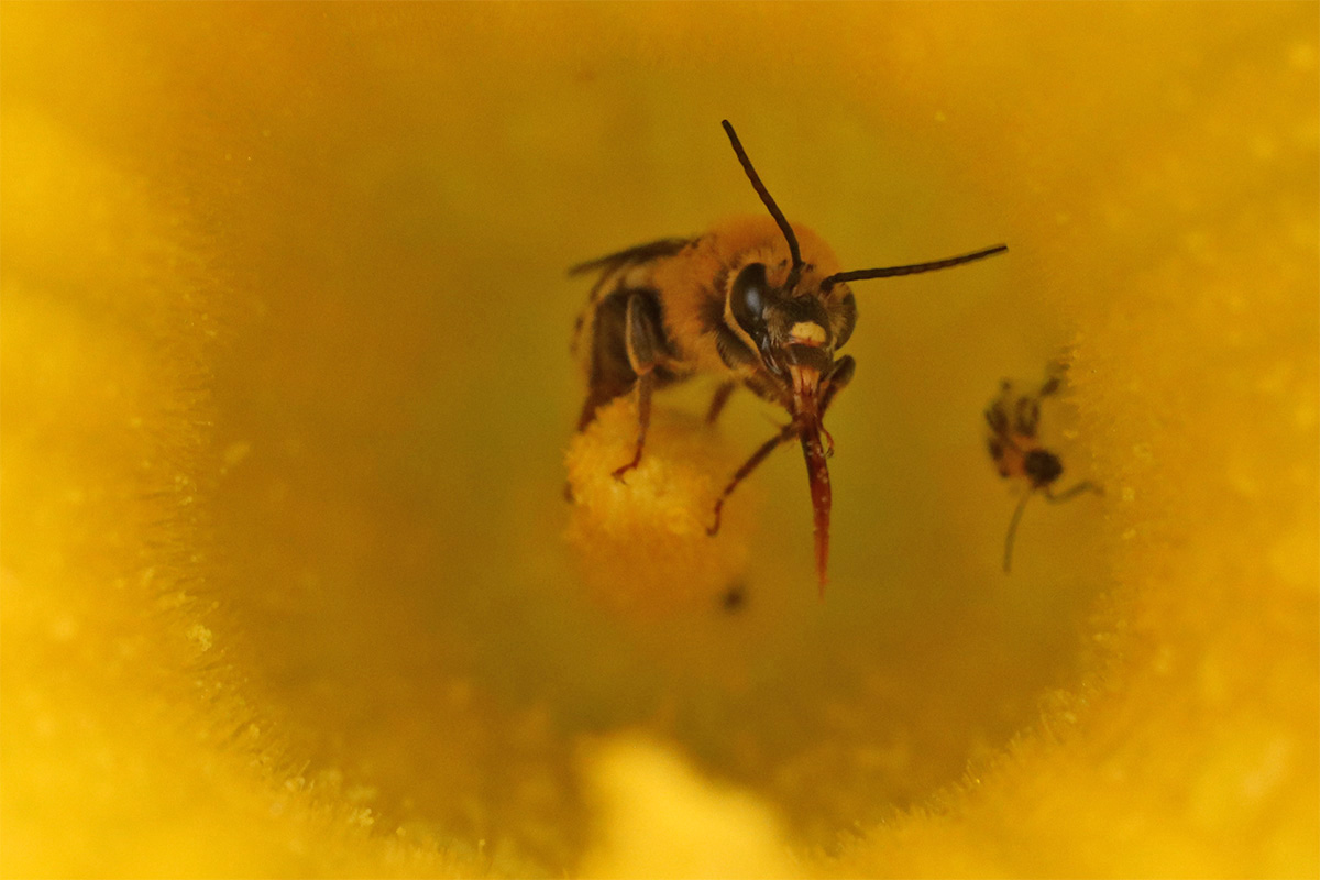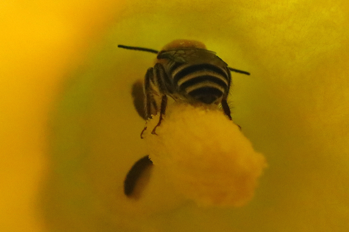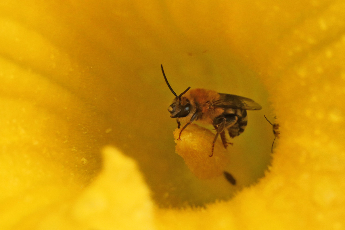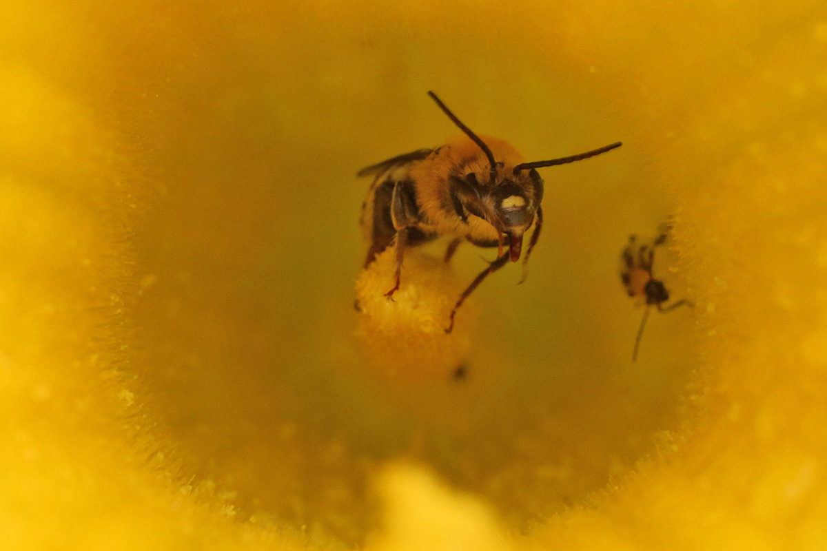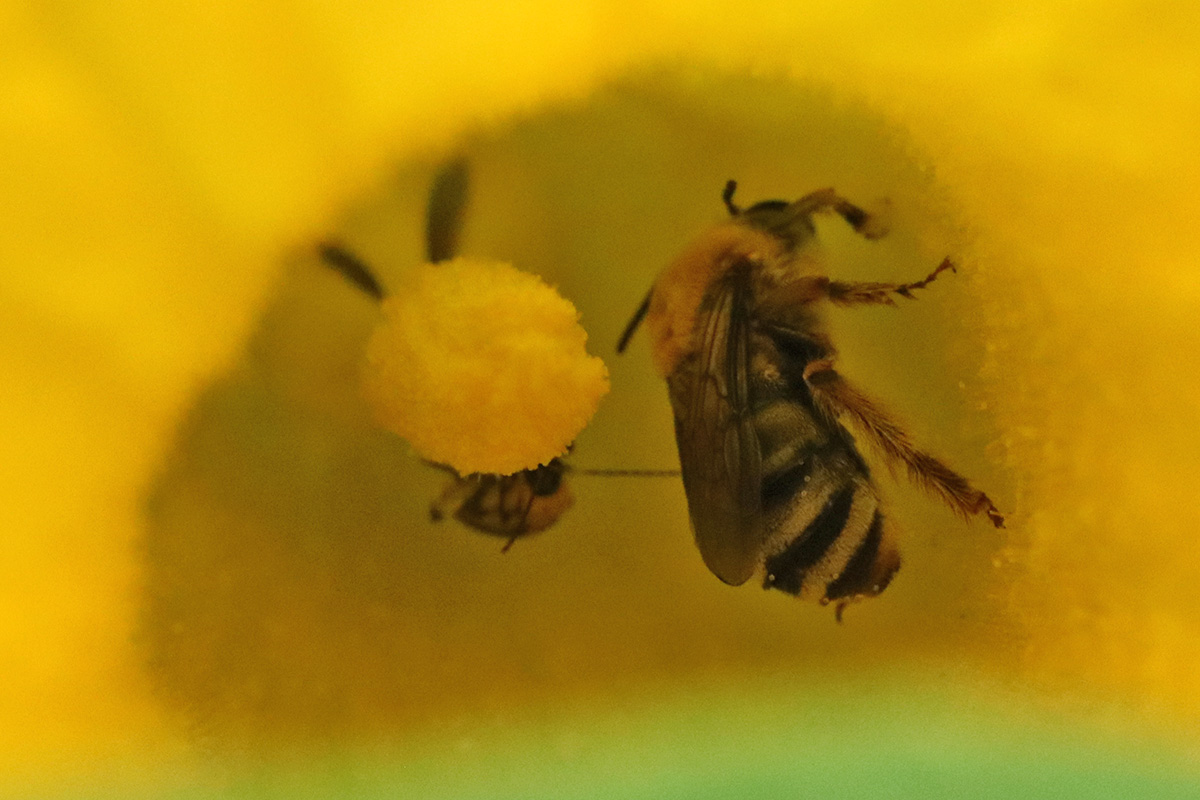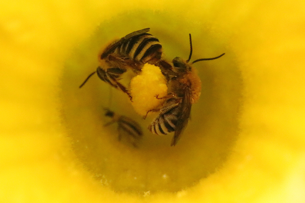 i hung out in the backyard, taking photos of plants with my dSLR camera. a lot of squash blossoms are occupied by either squash bees or cucumber beetles, or a combination of both. i squashed as many cucumber beetles as i could get my hands on (they're good at escaping).