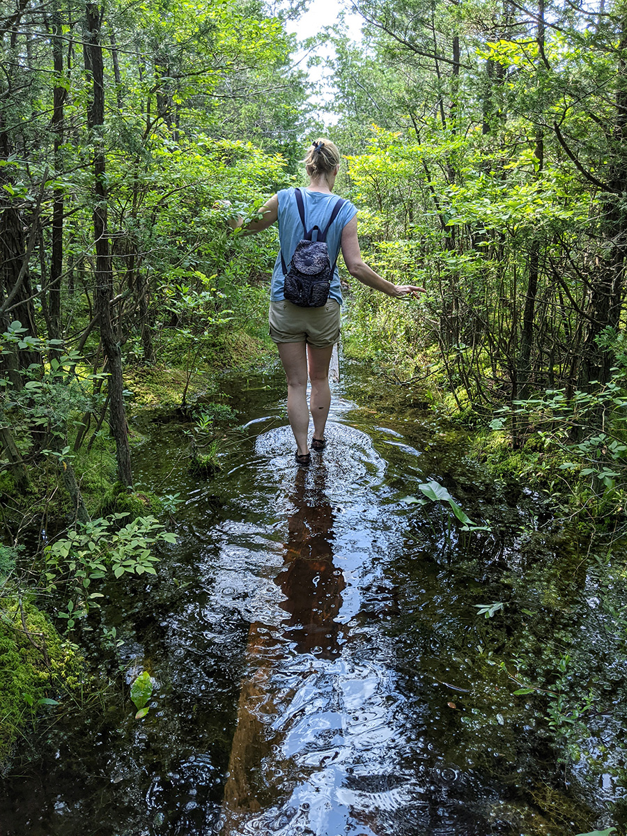 i didn't get any mosquito bites in the bog, but as soon as we left, i squatted two bloody mosquitoes making a meal on the back of my leg. like before, being back on solid ground was a little disorienting for our wobbly legs. it took us another 20 minutes to walk to where we parked the car.