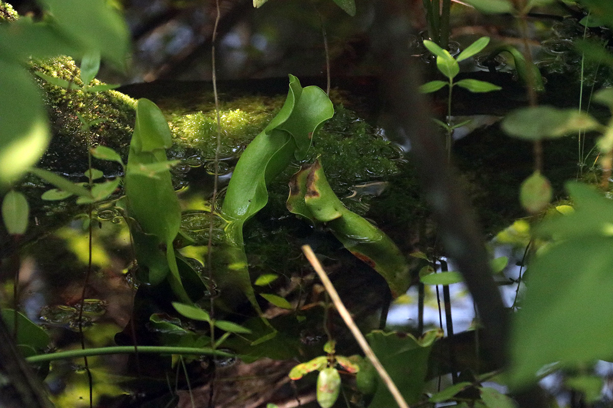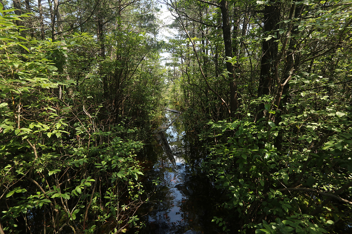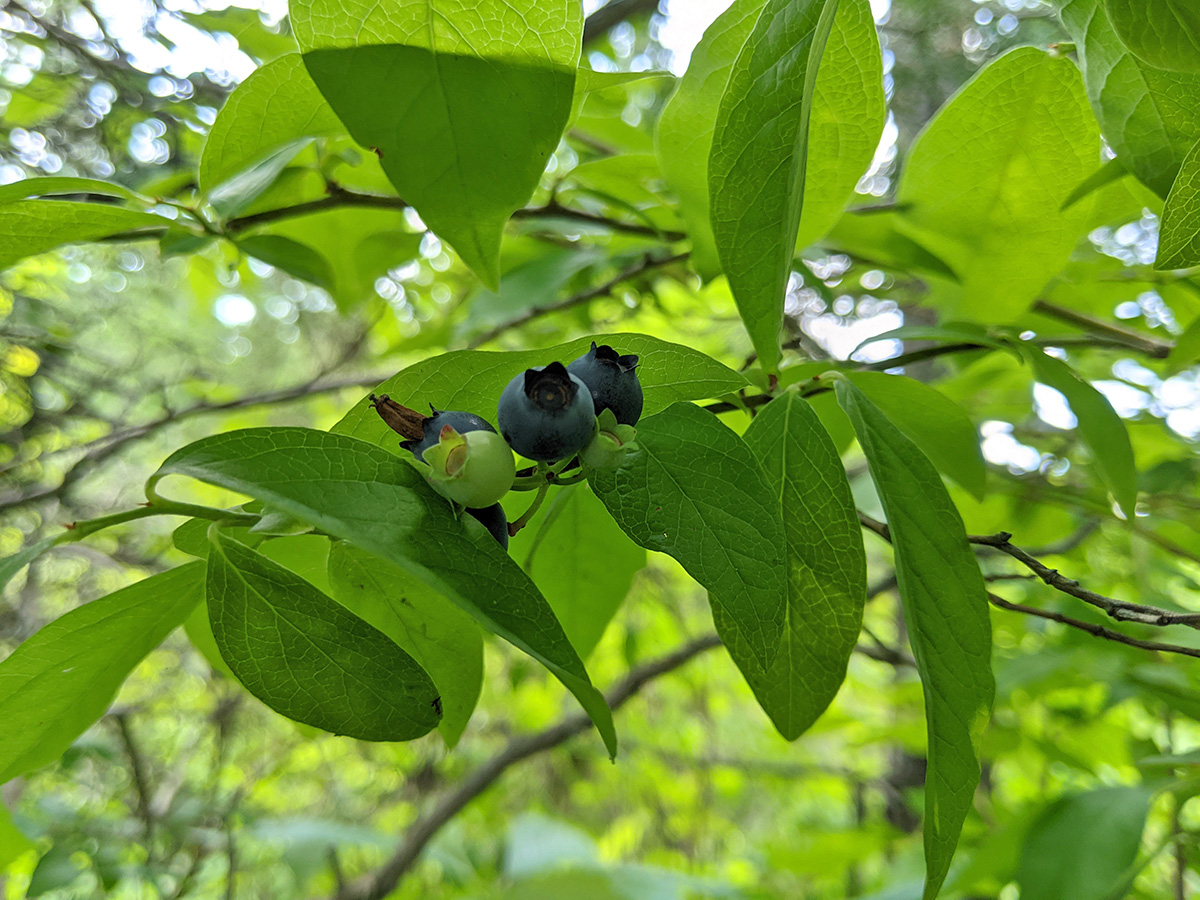 in the second bog forest is where we saw better specimens of pitcher plants. i even spotted a small water snake slithering away underneath a wooden plank. by 3:30pm we finally made it to the end of the boardwalk. it used to extend further out, but those planks had rotted and weren't replaced. there were also some high bush blueberries, and almost as a prize for our hardwork, we did some foraging. they say wild blueberries aren't as sweet but they have a stronger blueberry flavor. we started heading back.