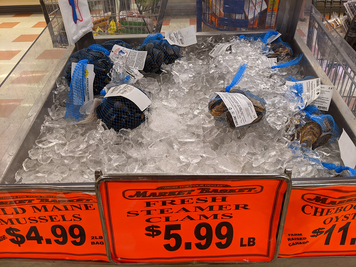 afterwards we went to the burlington market basket for supply run. of the market baskets we visit (chelsea, waltham, burlington, somerville), this one is only the third largest, but still many times bigger than my local (somerville) market basket. they had a lot of things we wanted, but not everything (didn't have pork bones, nor stewart's diet root beer, nor buldak ramen, nor the special spicy thai canned tuna). i did however find hog casings for making homemade sausages, i'd never seen that before, perhaps a future food project. we finally returned home by 3:40pm.
