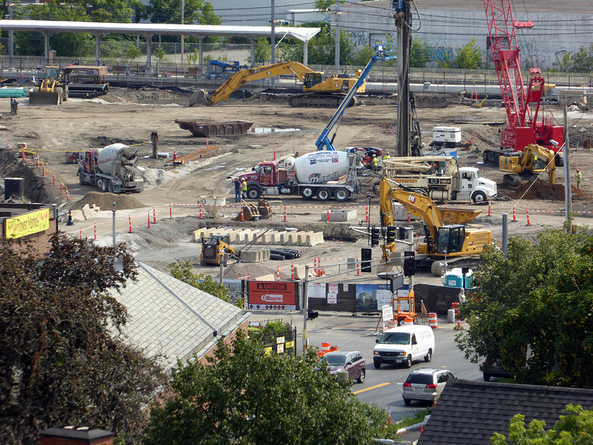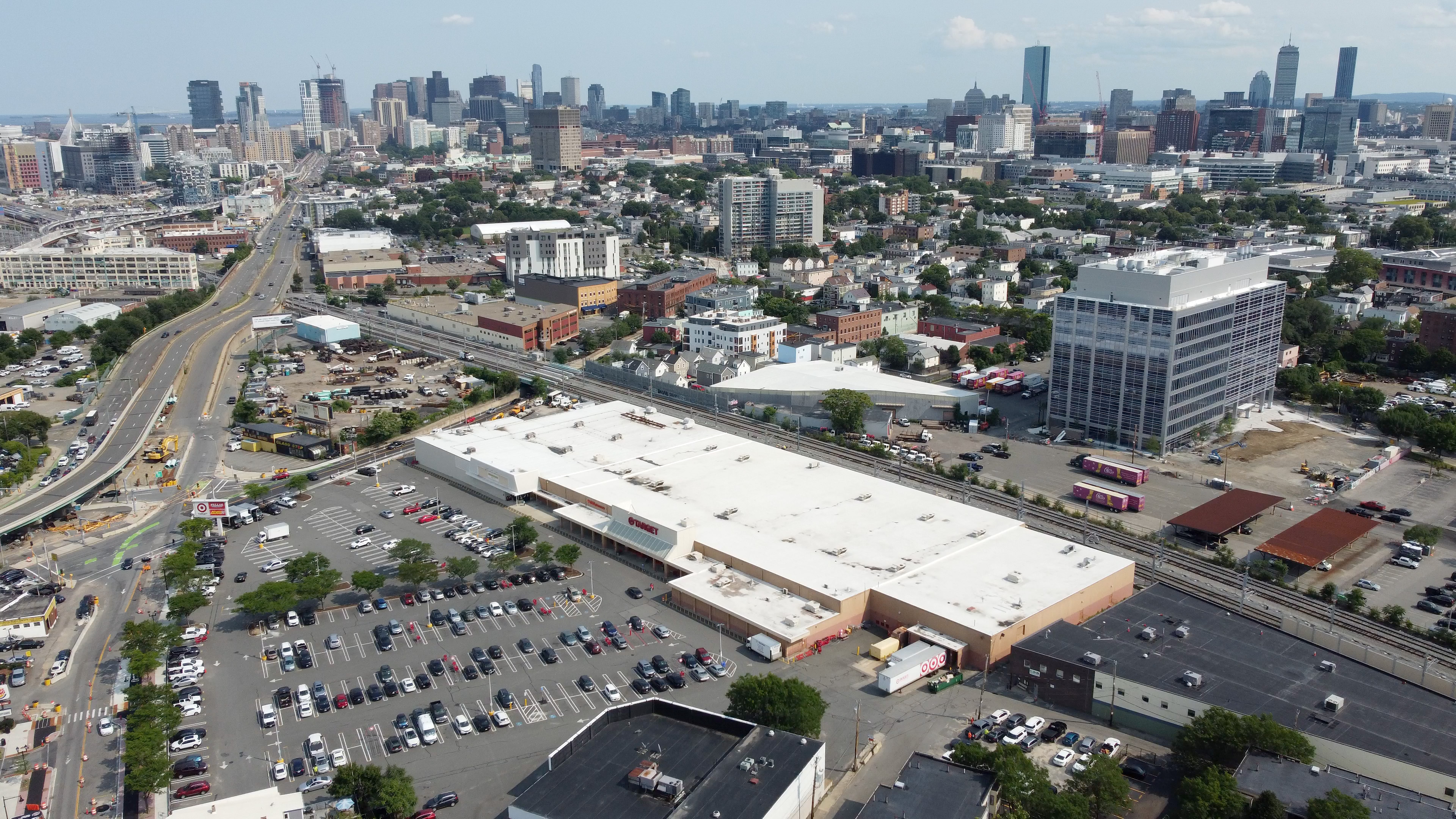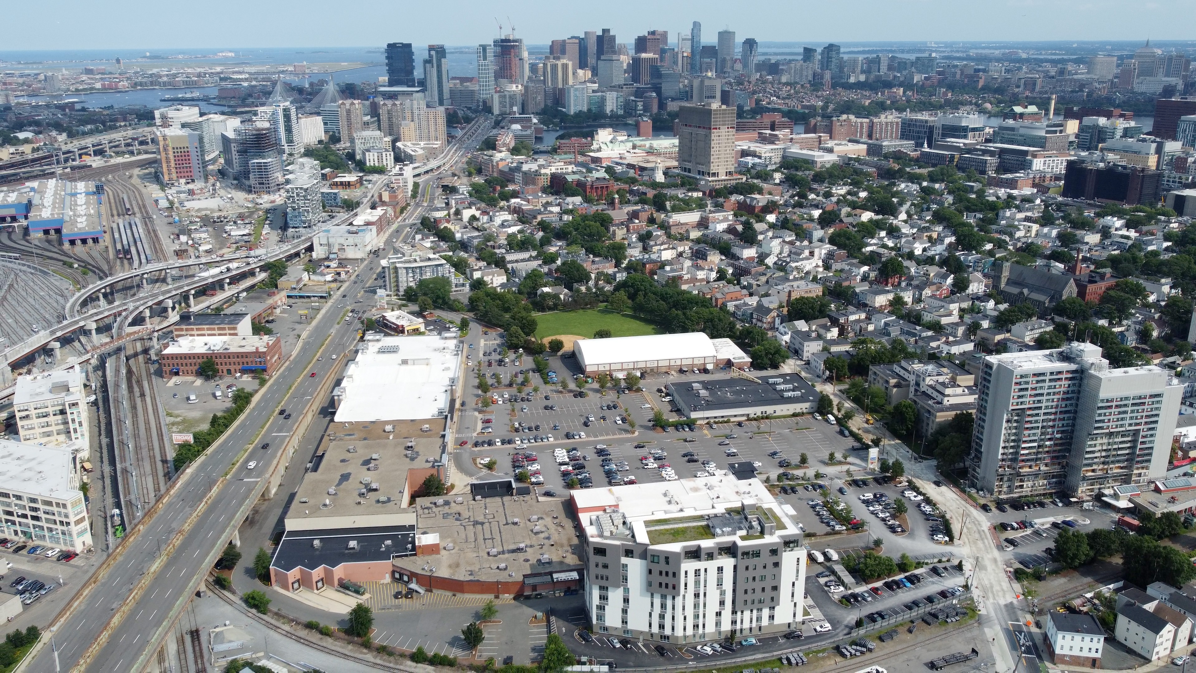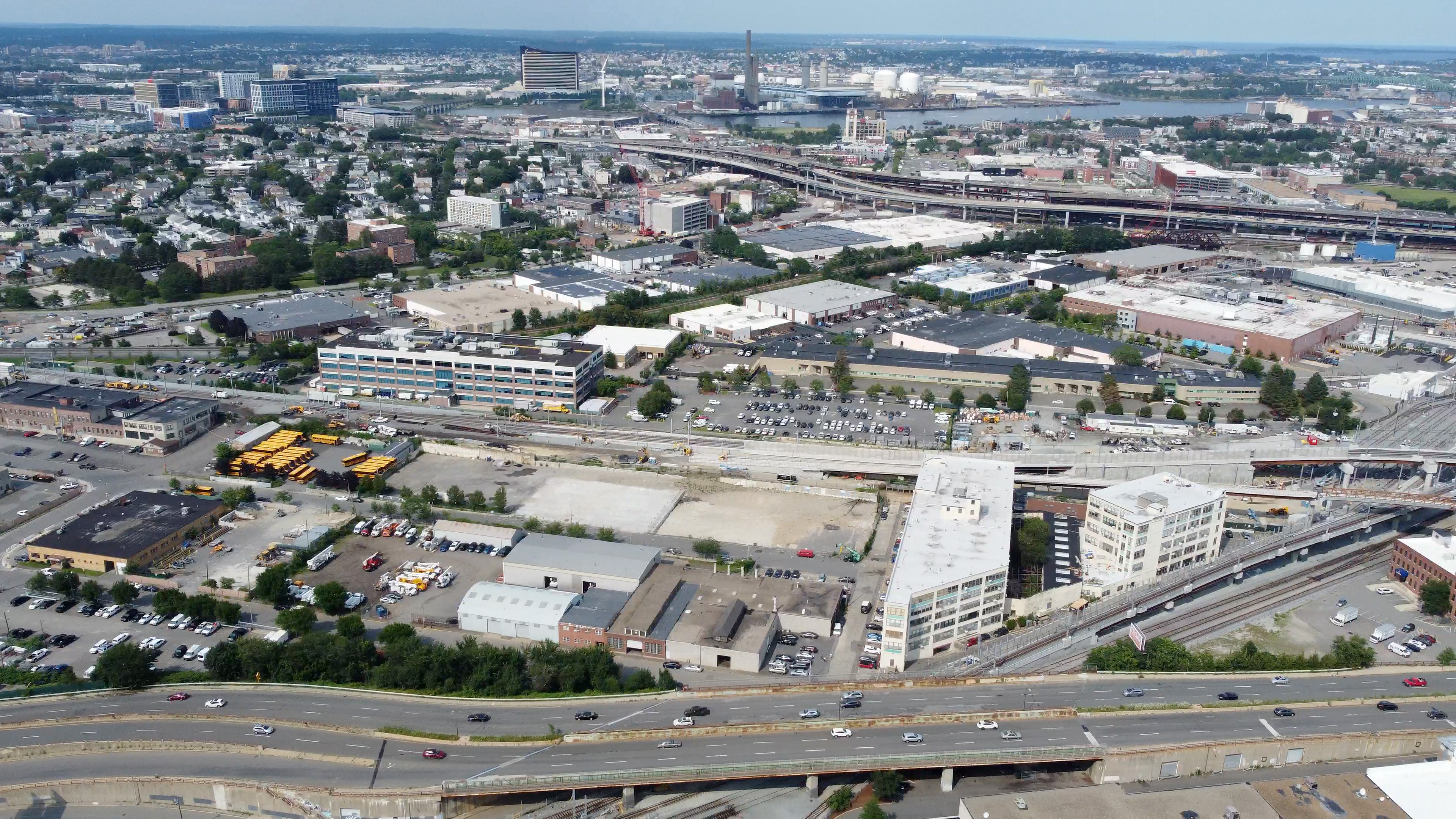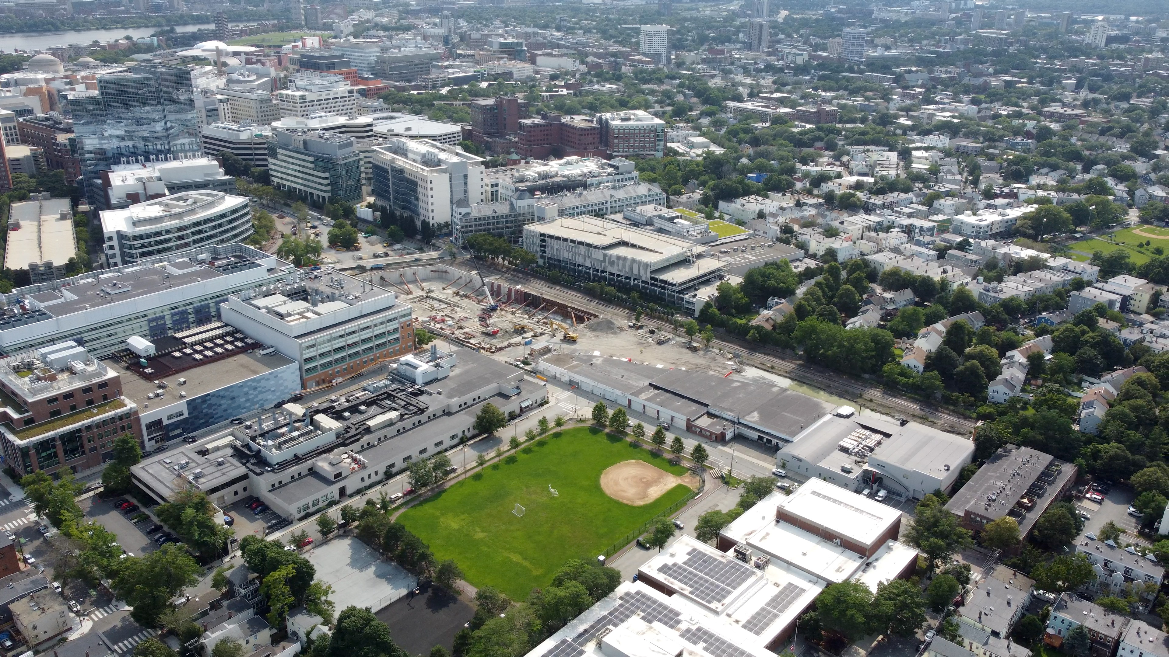 the couple beneath the tree actually heard my drone ascending into the air. i flew it over the union square MBTA extension station construction site (at 200ft elevation measured from prospect hill), then continued onwards towards boston, in a south-southeastern direction. i flew as far as rogers street in east cambridge, my former workplace (since torn down and replaced with a biogen lab).