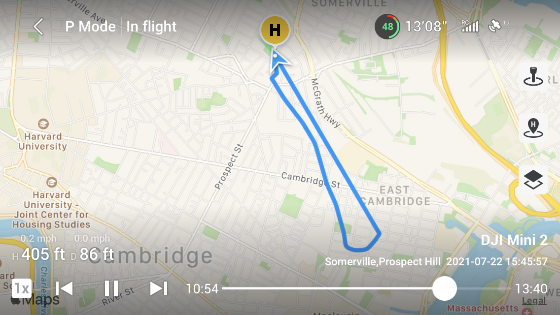 later when i checked my drone footage, i discovered the reason why i had signal loss was because i fly by a building that was outfitted with various antennas and satellite dishes. it was also a good thing i didn't keep on flying past rogers street, i was actually flying relatively low (200ft) and there was a building ahead of me with various cranes that i might've crashed into. but that doesn't mean i can't fly elsewhere, and the next time i try from prospect hill, i'm going to see if i can reach MIT or maybe even the charles river.