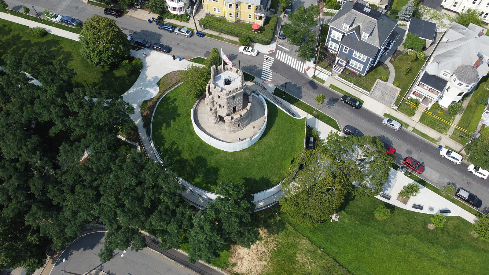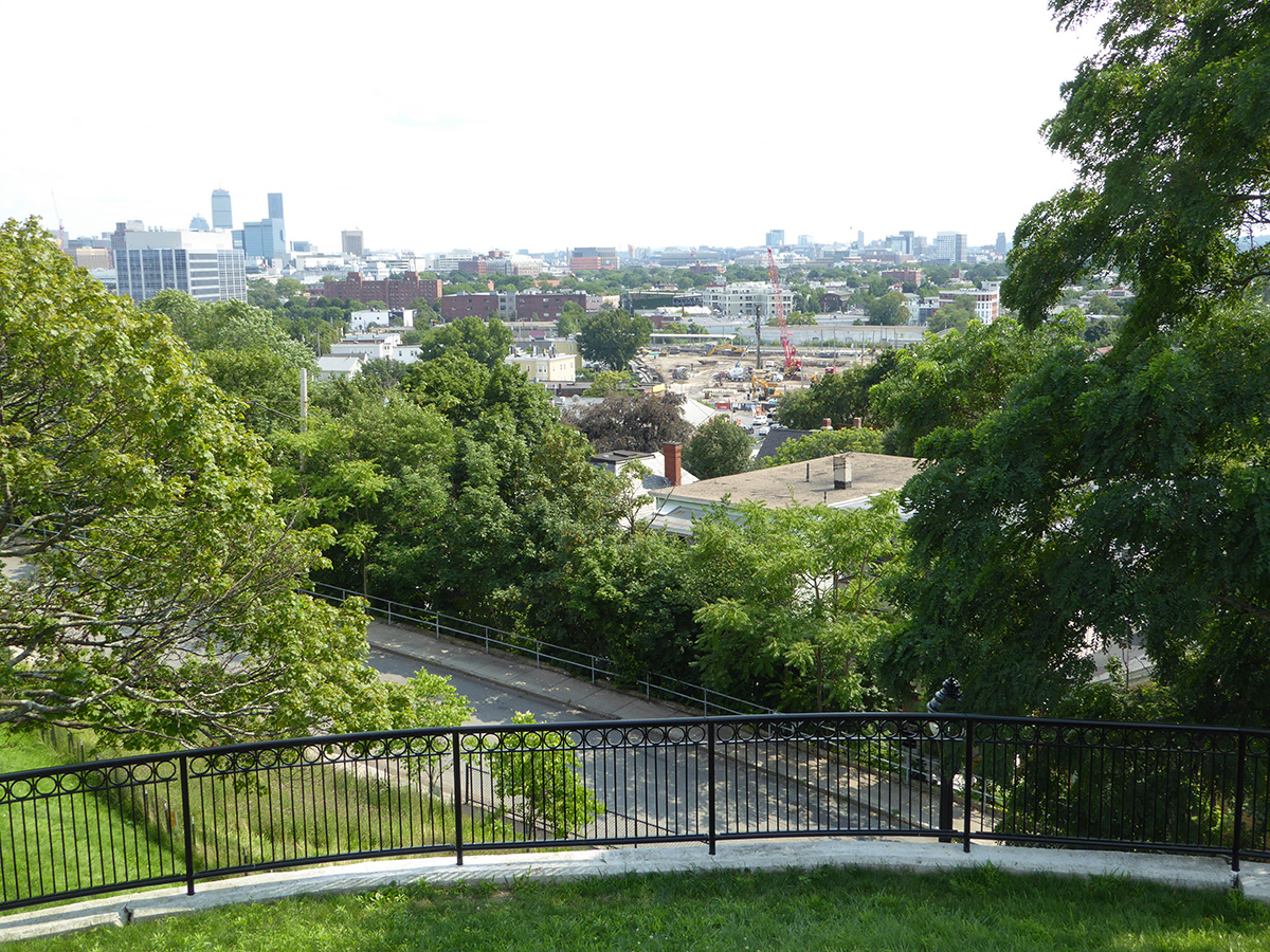 i left the cafe around 3:15pm and headed for prospect hill park to fly my drone, which i already brought along in my messenger bag. it's a great spot to fly, with a clear view of boston and (behind some trees) cambridge.