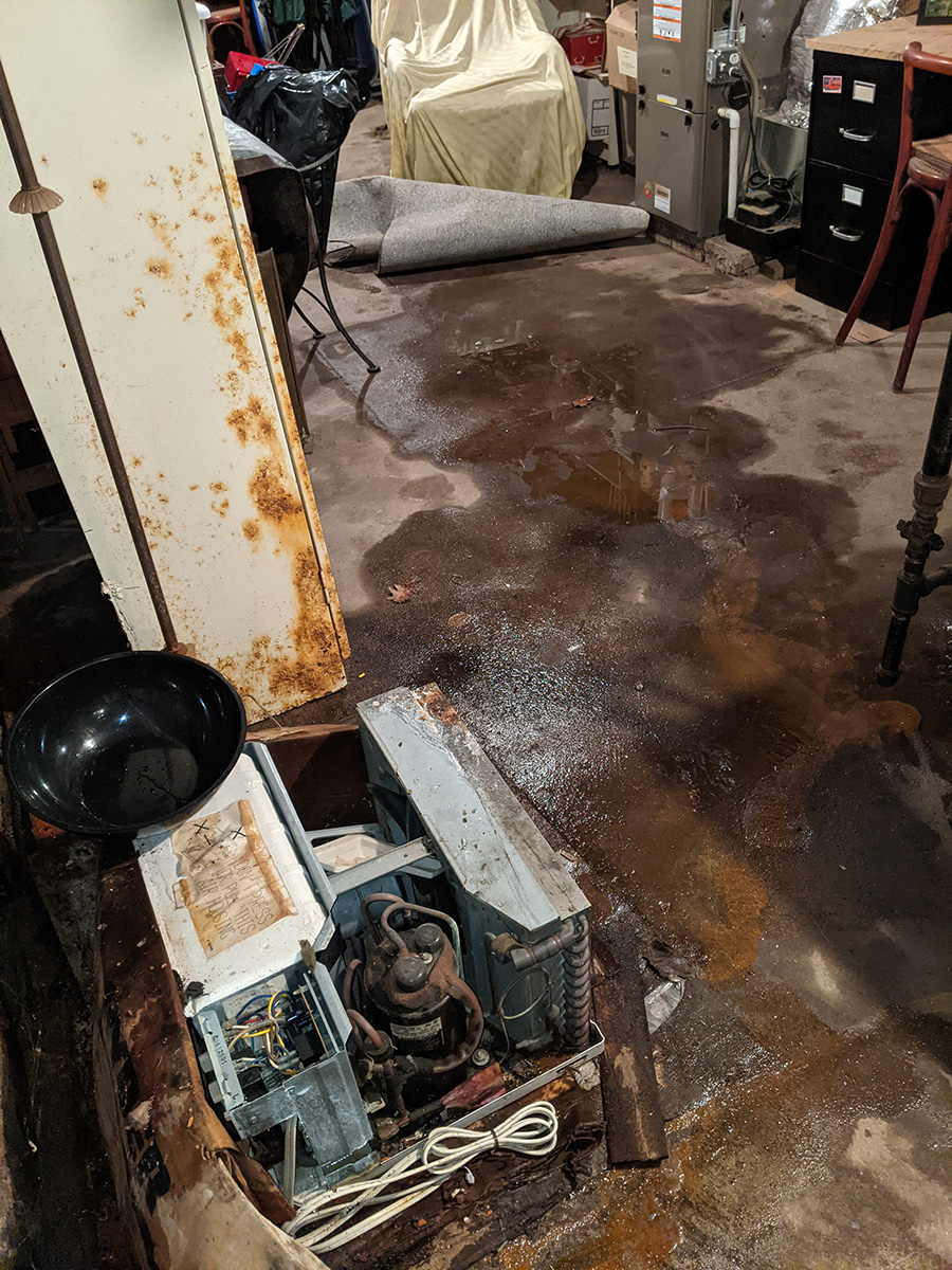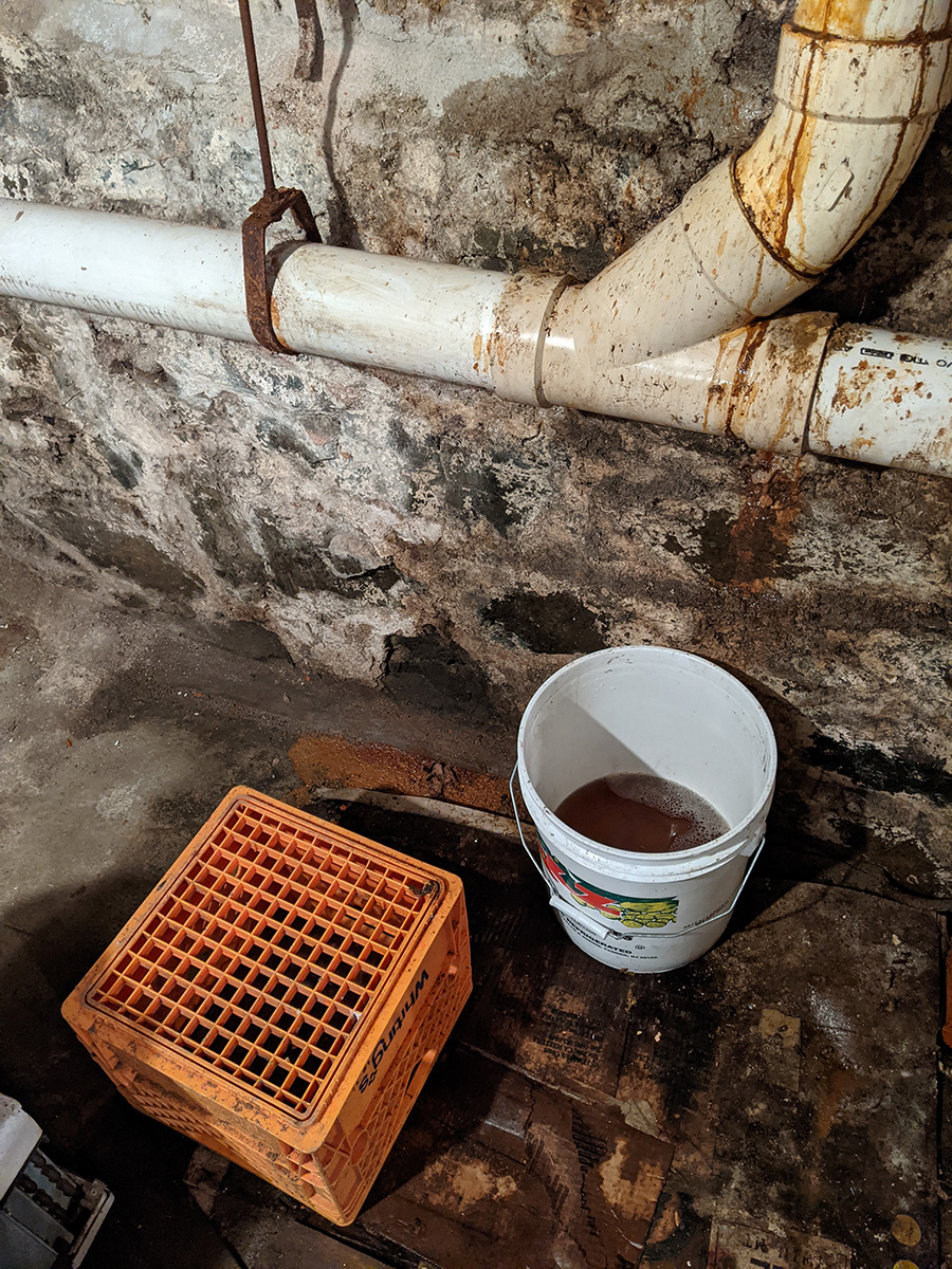 after dinner i rode back to cambridge. the sky was still hazy, the sun a deep orange ball, like a super organic egg yolk. first thing i did was go in the basement to check on the status of the leak. the bucket managed to catch about 2 inches worth of rusty-colored water. i poured it out before putting the bucket back underneath the soil pipe. i wouldn't know there was a leak either except my bathtub wall paints are peeling, like it has some kind of water leak damage pox.