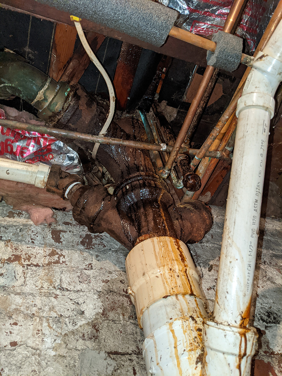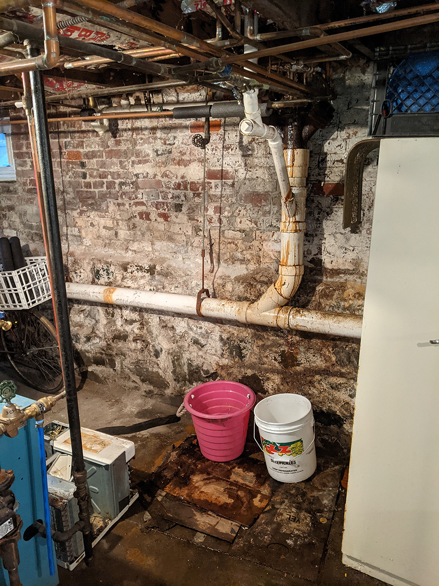 when paul finally gave me the go-ahead via e-mail, i called alewife co. at 9am to book an appointment. i explained the problem, they said nothing about rebuilding or replacing the soil pipe, but instead said they'd check the shower assembly or reseat the toilets, which are often the cause of these pipe leaks. victor checked his schedule, and said the earliest available time they could come would be next monday afternoon, a week from today.