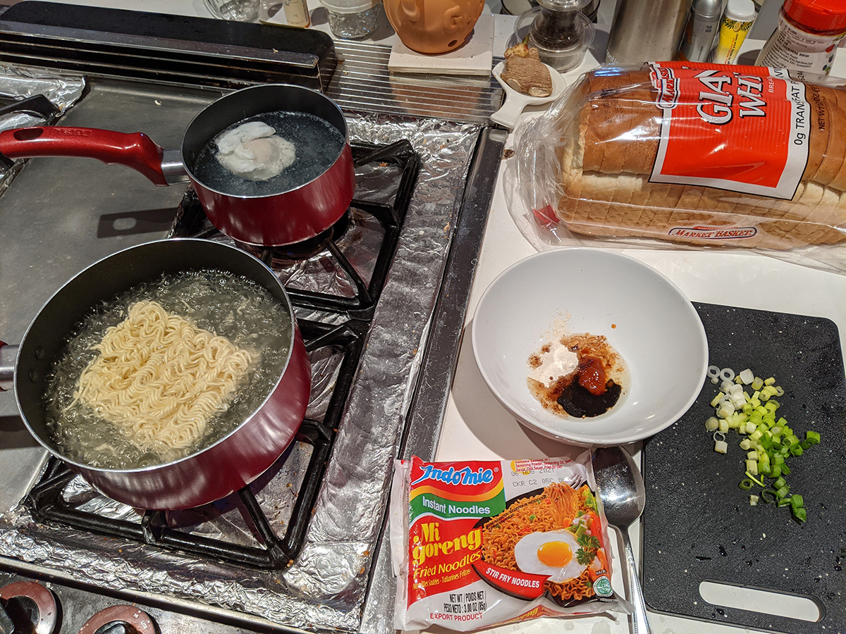 i got a little hungry in the afternoon so snacked on some gorgonzola cheese with table crackers. i found gorgonzola cheese to be too bland, i like my blue cheese with a more pungent flavor, like danish blue cheese. afterwards i was still hungry so i made some indomie mi goreng.