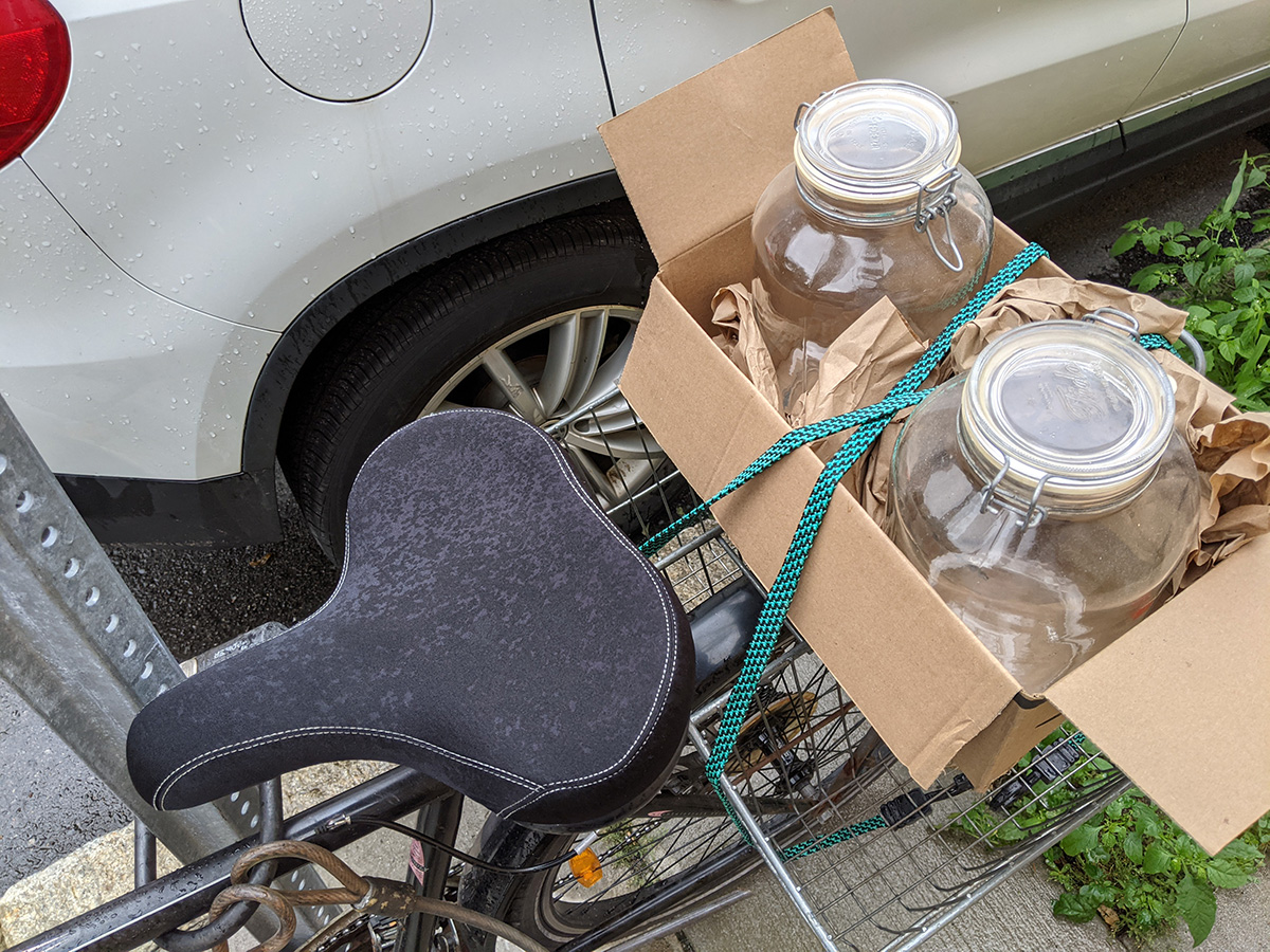 i was about to leave the cafe when it started raining unexpectedly. i waited another 10 minutes for the passing shower to leave the area before biking home. i also brought home 3 empty fido jars, which were only at the cafe because they used to hold sichuan paocai.