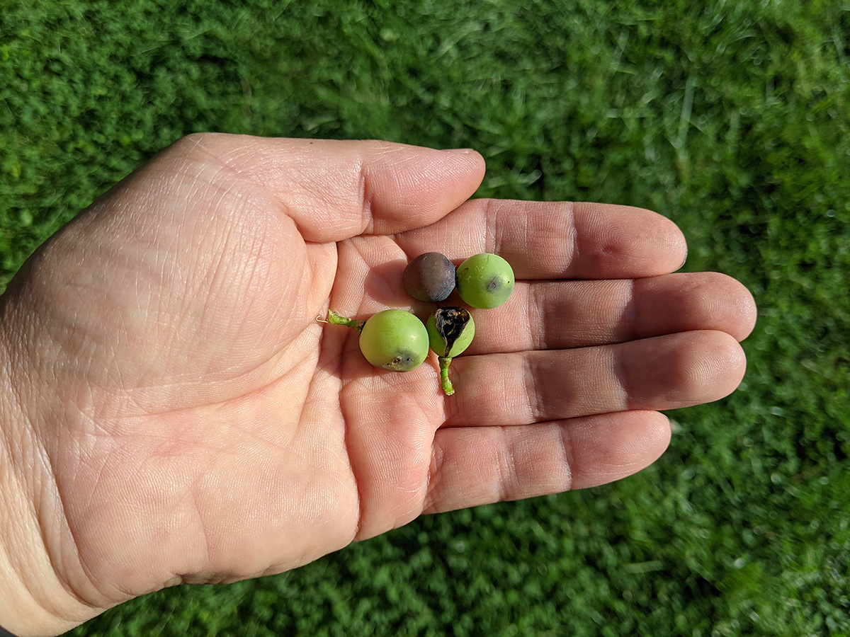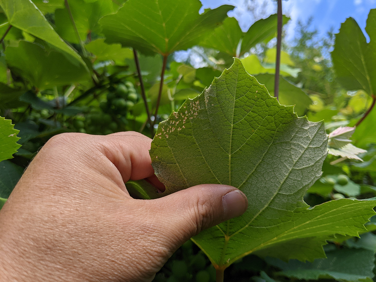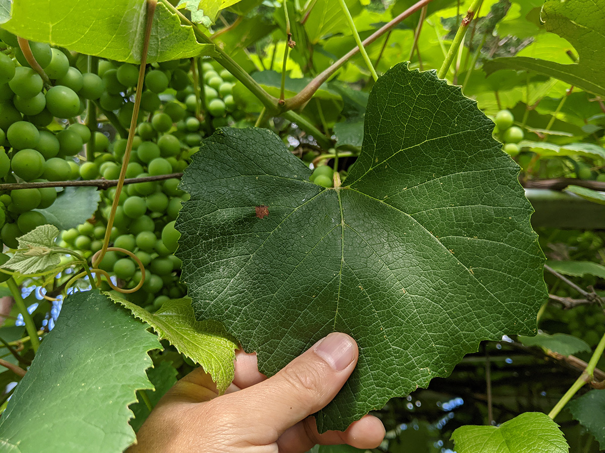 i'm still waiting for the grapes to develop some kind of disease that will rot all the fruits and shrivel all the leaves, but that has yet to happen. here and there i see signs of possible other diseases beside black rot that might be affecting the grapes, but at very low level. i can't remember the last time we had a healthy grape harvest, so we're entering uncharted territories. i would be believe it until we actually get some mature grapes.