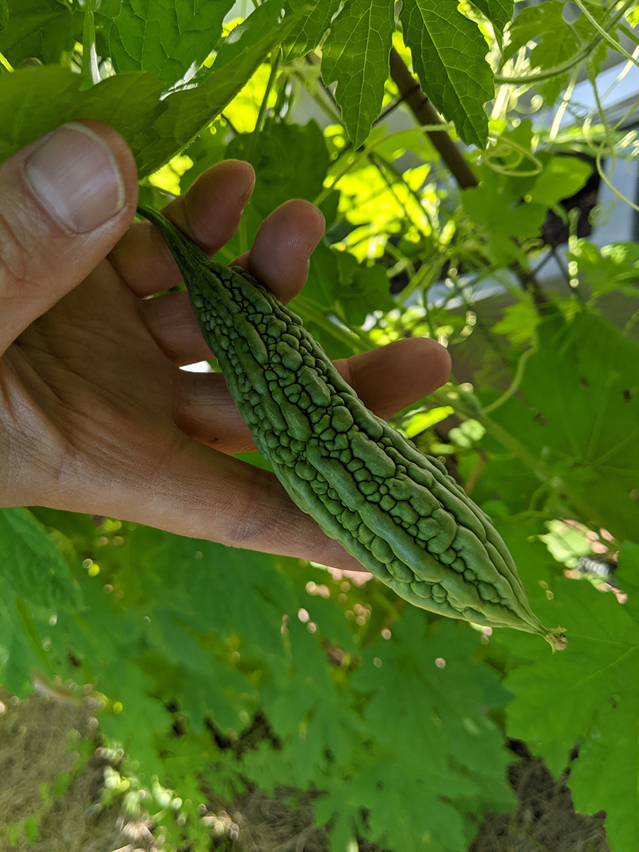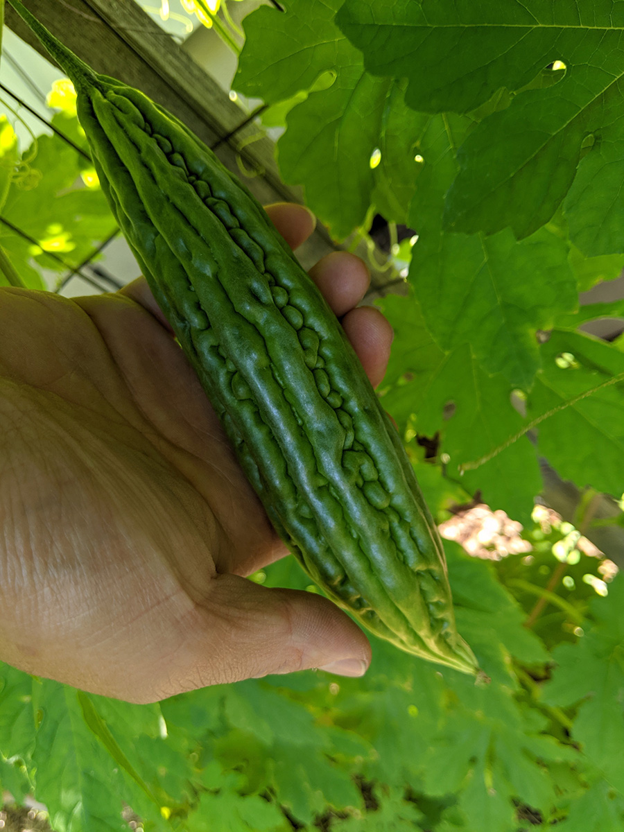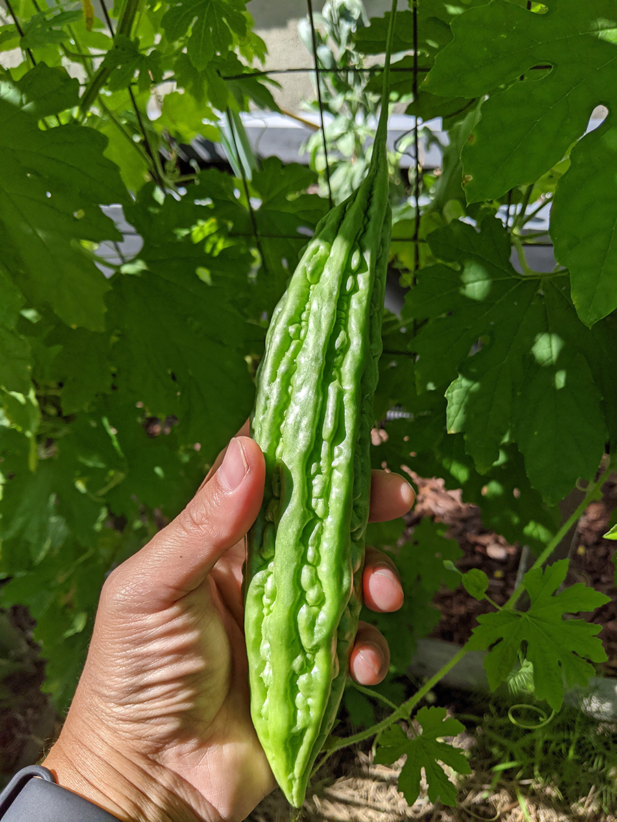 my parents counted the bitter melons, the official tally is 28 melons. i also fertilized one of the orchids my father brought back from the cafe. it seemed awfully neglected, with soft wrinkled leaves sticky with mealybug droppings. i brought out all the orchids and sprayed them with neem oil.