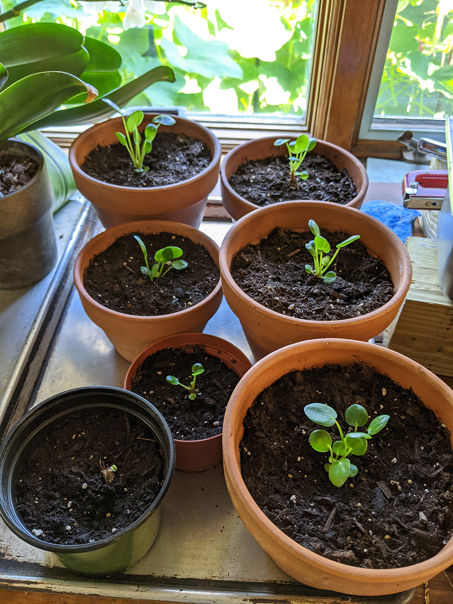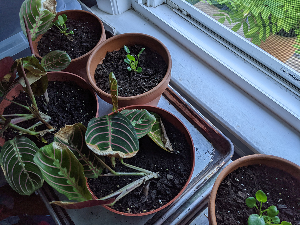 i moved the pileas to my parents' bedroom because i didn't want the pileas in the sunroom sitting next to the mealybug infested orchids.