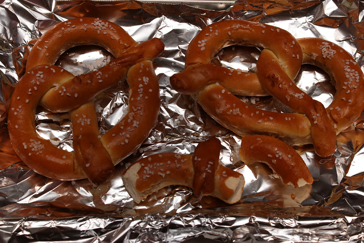 i started at 5pm and didn't finish until 7pm. to reward myself, i toasted some frozen soft bagels in the toaster oven, sprinkled with plenty of pretzel salt. i ate them with some mustard.