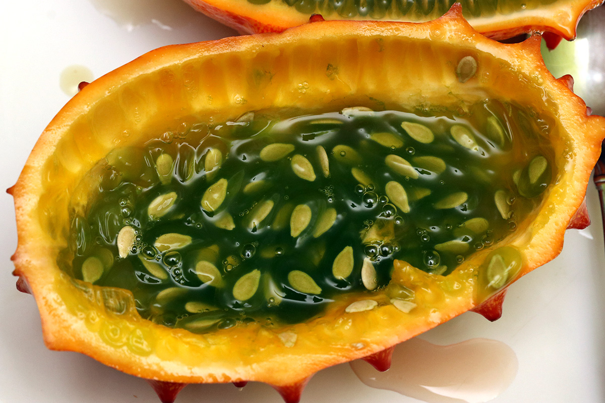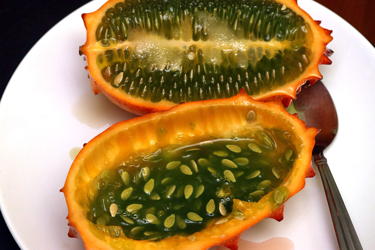 for dinner i made a buffalo chicken salad sandwich with some readymade buffalo chicken salad i bought earlier. afterwards i ate one of the horned melons. they're surprisingly filling, afterwards i didn't have any urge to snack like i usually do.