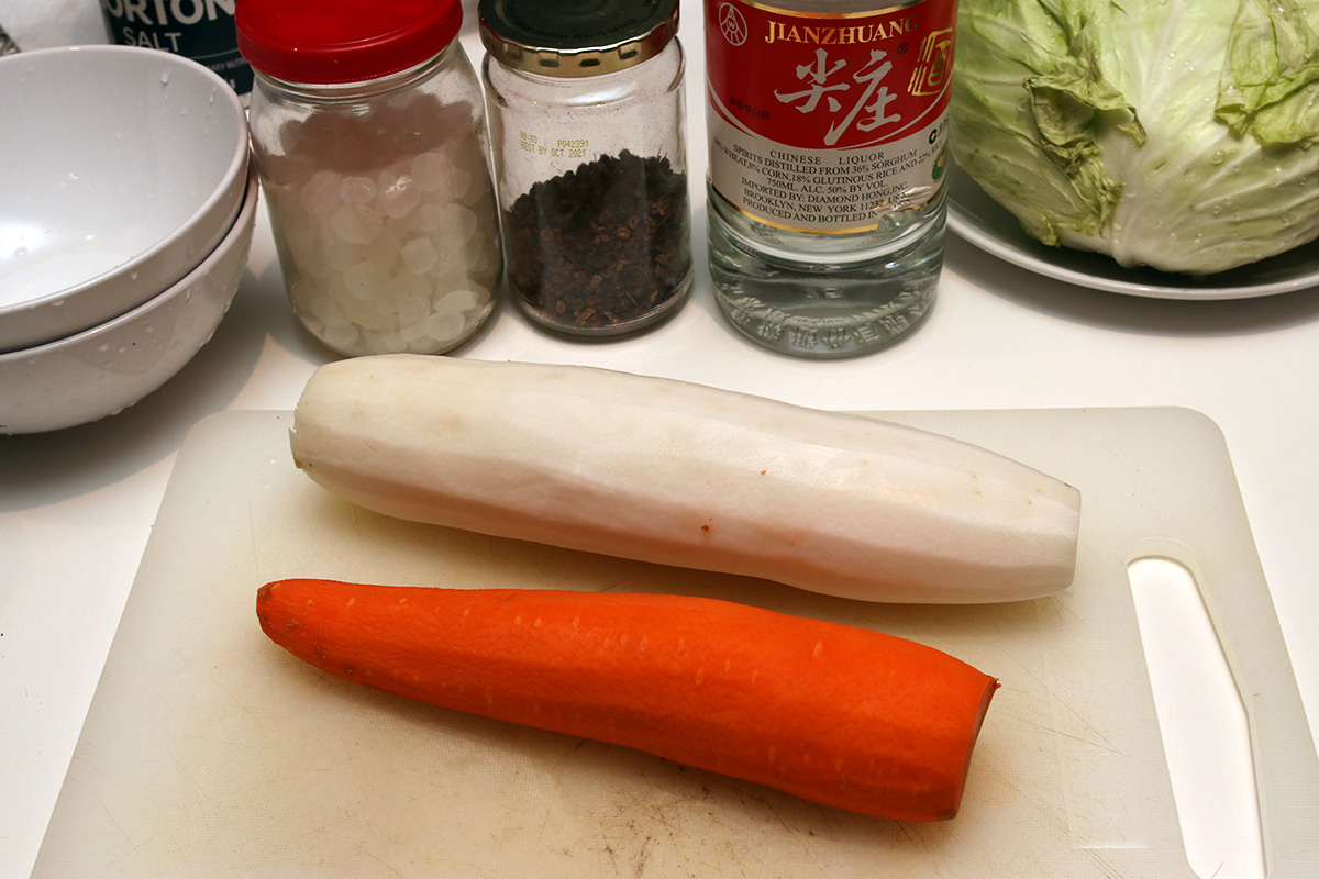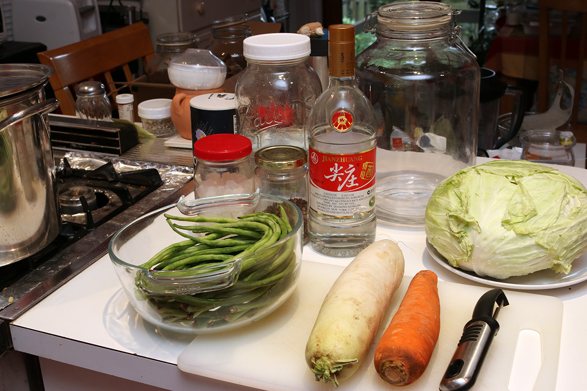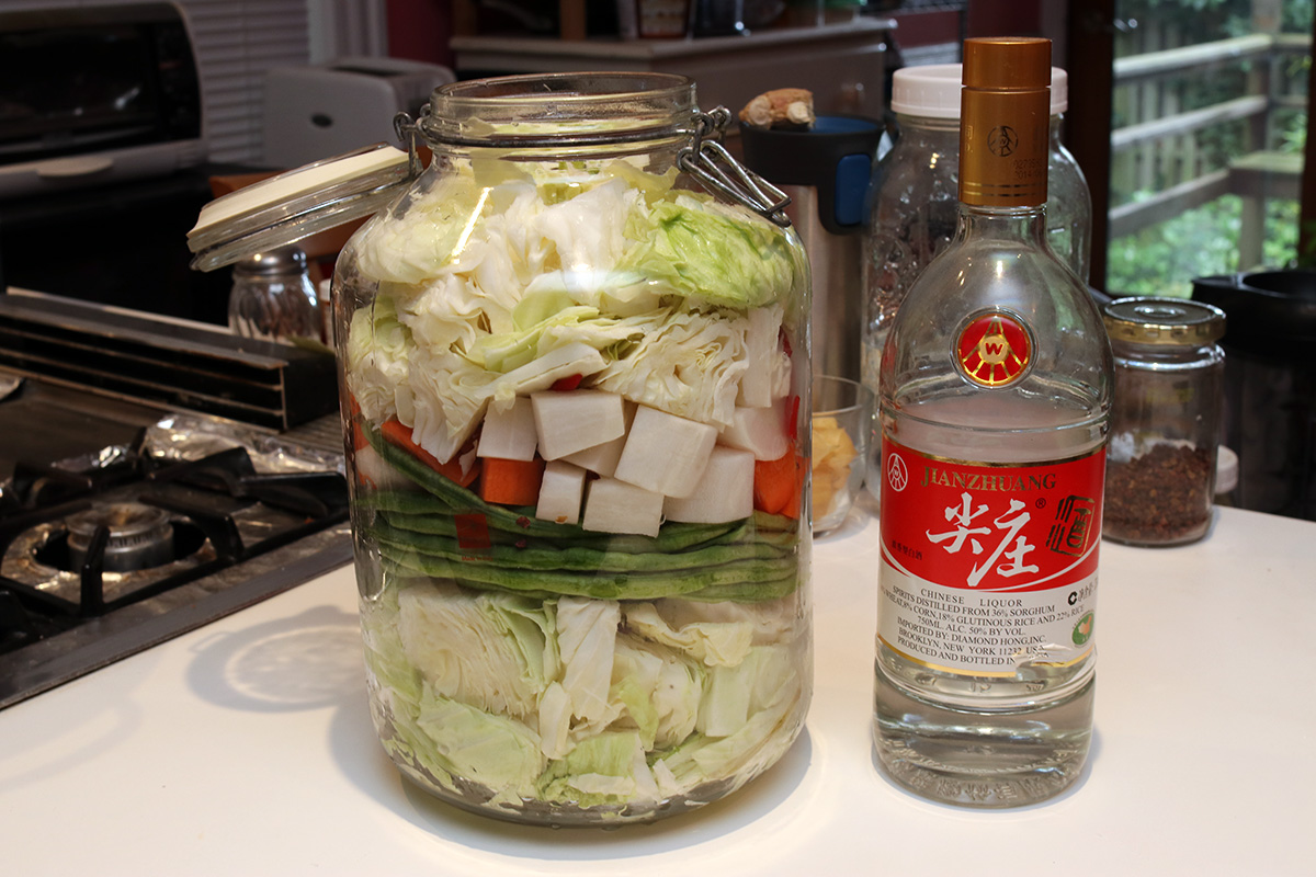 9 cups boiled water 3 oz. salt 2 tbsp sichuan peppercorns 1/8 cup chinese baijiu 3 tbsp rock sugar |