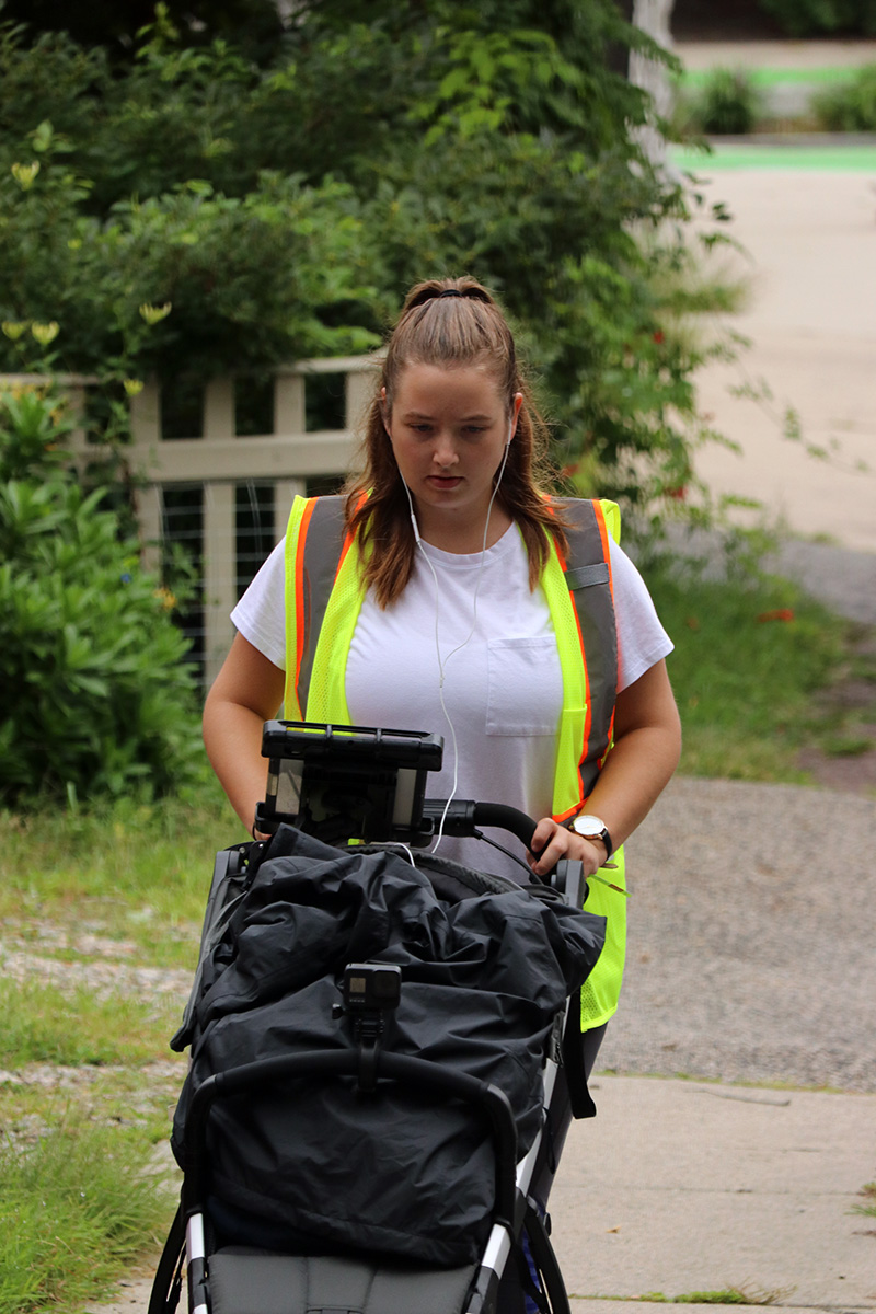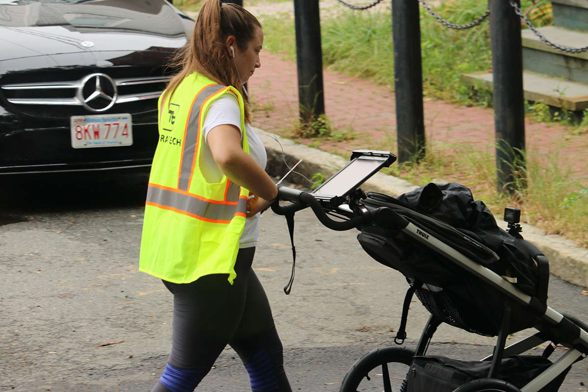 i watched a young mother this morning pushing a baby stroller wearing a safety vest. that's not something you see everyday. what's even weirder is she had this big tablet holder mounted to the stroller handle and seemed to be preoccupied with her tablet instead of watching where she was going. then i saw her crouch down and stick something in the seam between the pavements. turns out she wasn't pushing a baby but instead taking measurements of the sidewalk. on the back of her vest it said, "tetratech," maybe they're doing an infrastructure survey.