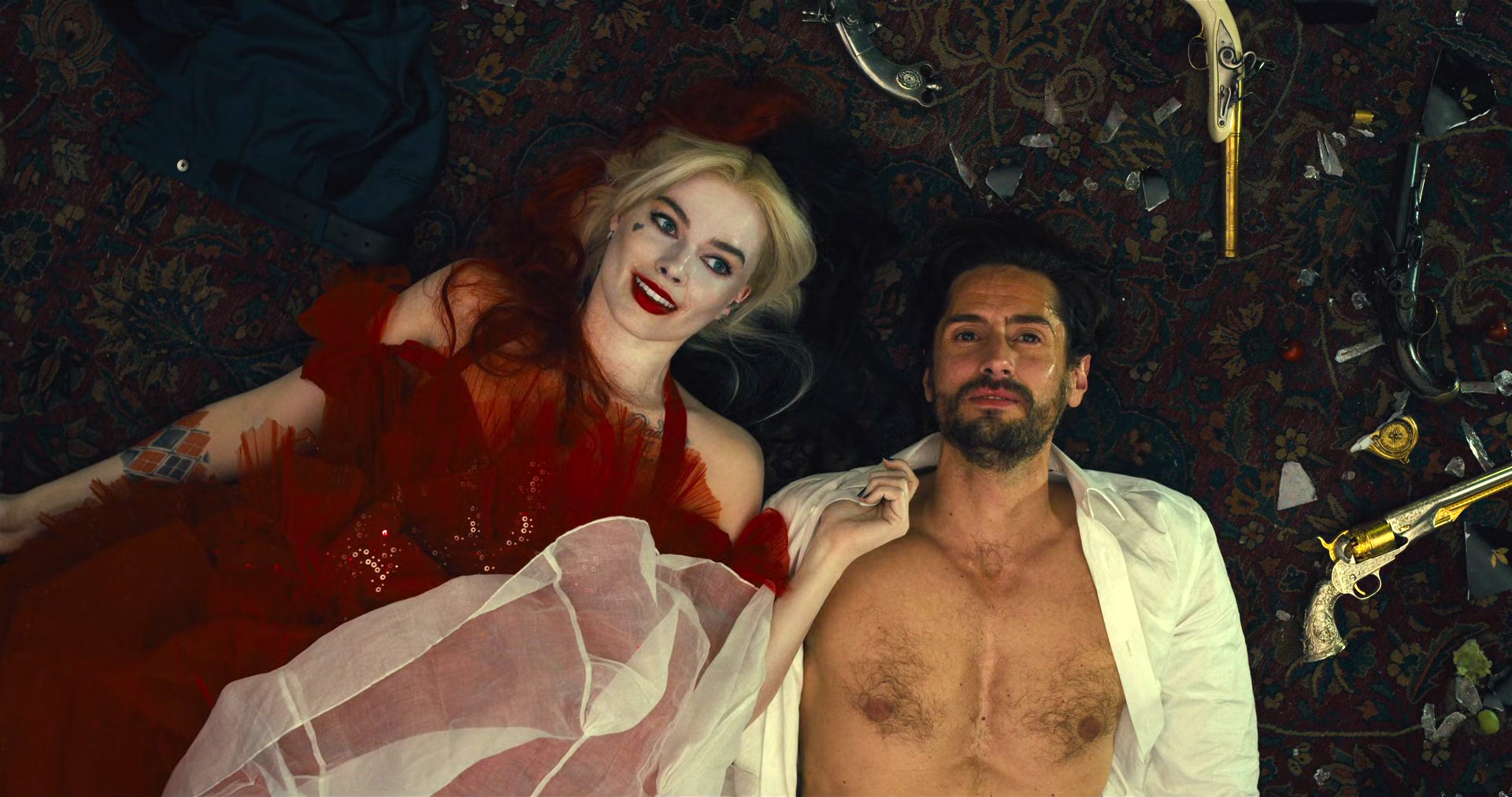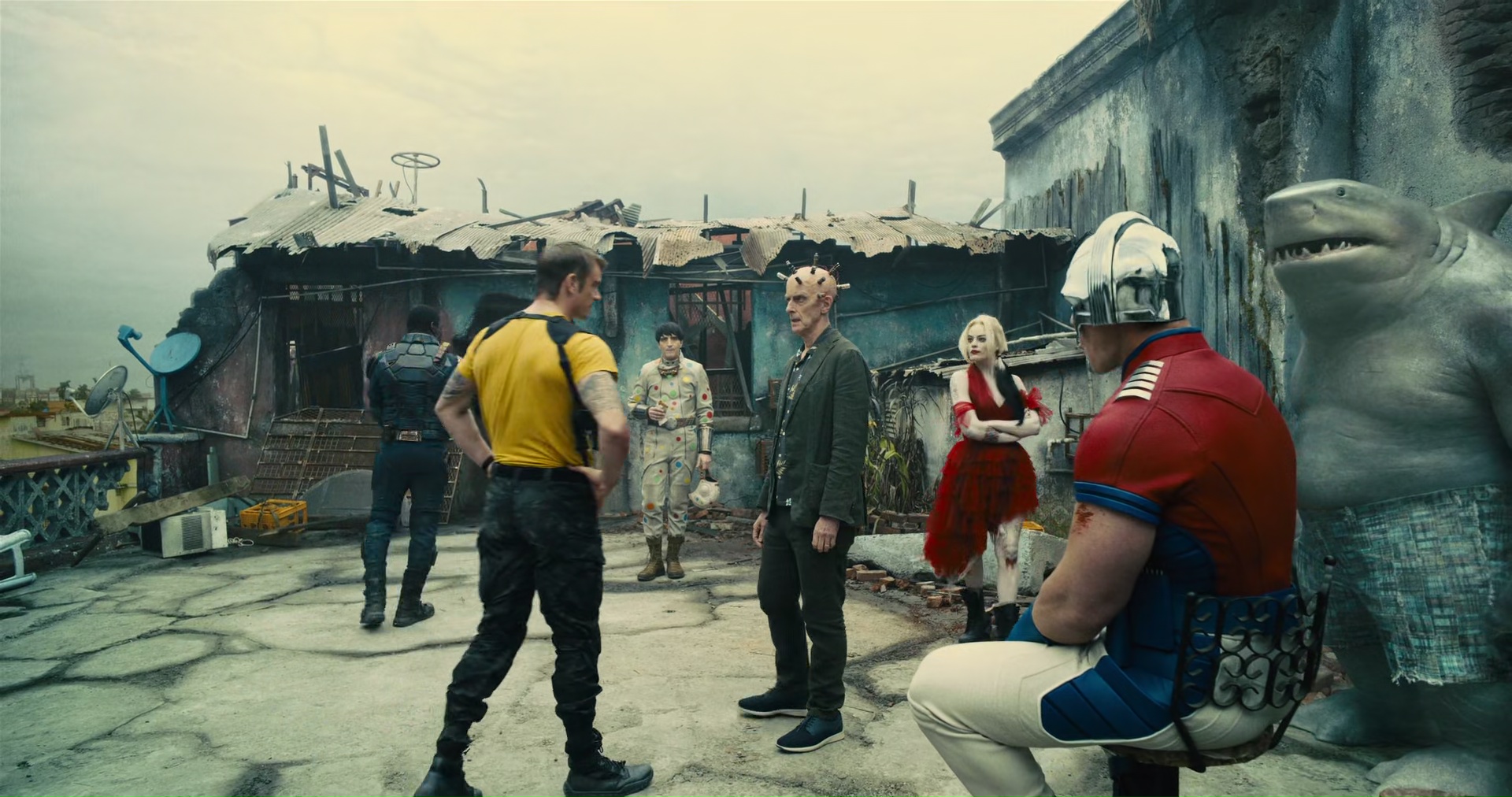 i watched the suicide squad (2021) today. i went in with low expectations, but the more i watched, the more i enjoyed it. it's very woke: male and female soldiers fight together, full male frontal nudity (for a change), and they don't sexualize harley quinn (part of the reason is because margot robbie has so much clout now, the studio couldn't get away with exploiting her a second time). the big bad was refreshingly creative, the violence gleefully graphic and unabashed to the point of comedy. the chapter titles are also very creatively designed, there are so many tiny details, the film's a fun labor of love. and so many cameos from james gunn's other films!