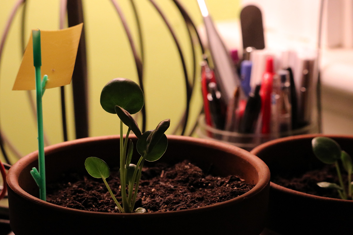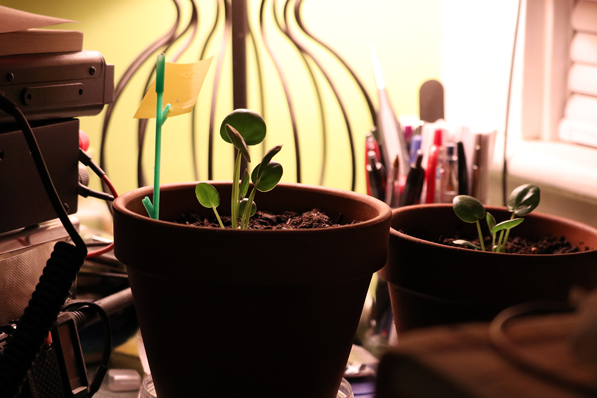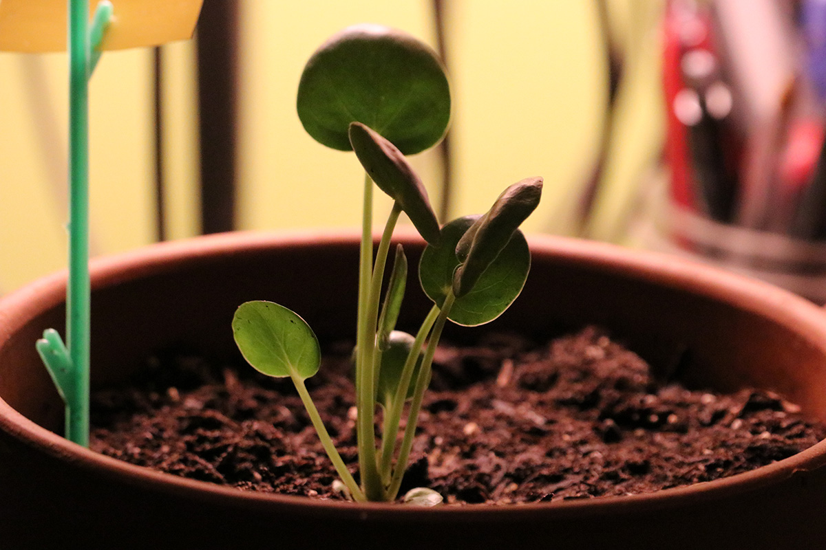 i'm still trying to find a good place to put my pileas. i don't want to put them outside where they'd get direct sun (i heard that turns the leaves yellow). however, putting them in my dining area up against the french door windows resulted in too little light. i had one pot in my eastern facing frosted window, but that too got too little light. i finally ended up putting them in my living room against a north facing window, which surprisingly is the brightest non-direct-sun window in the house.