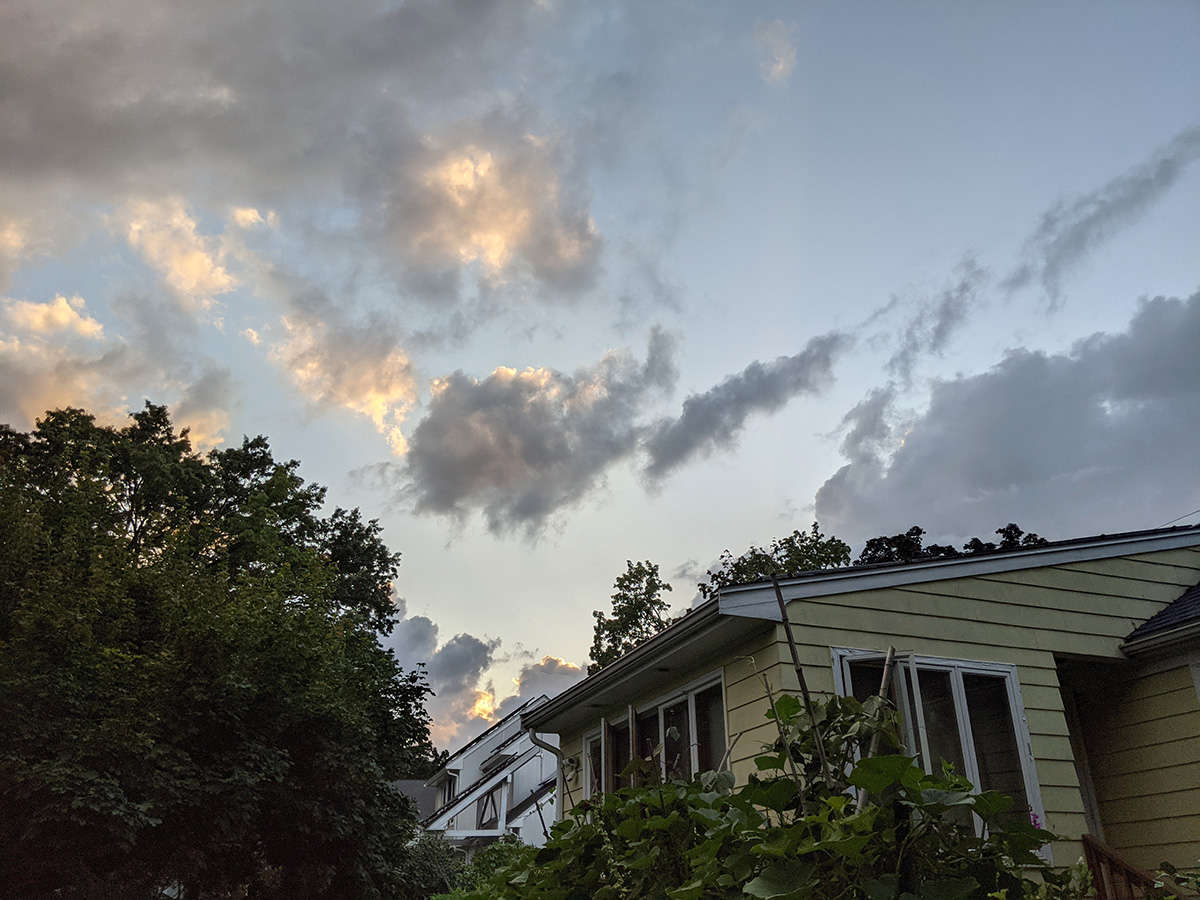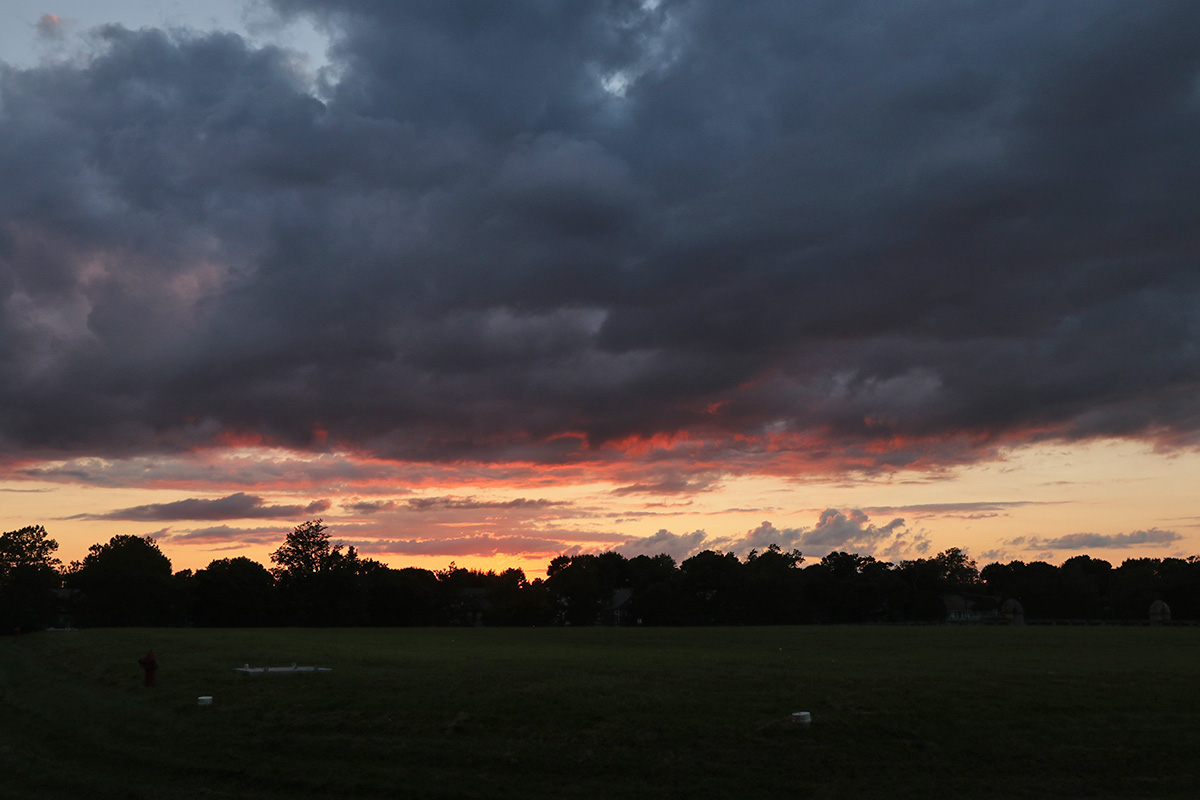 the sky looked like there might be a colorful sunset with interesting clouds. i stayed in belmont to take photos, but my mother left without me, making her way up to the reservoir, the highest point in the area. i left a short time later, walking up with my wide angle lens. i think a better choice would've been to launch my drone and get some photos that way. once i reached the top of the reservoir, i took some photos. i didn't see my mother but from her google location i knew she was on the other side of the reservoir. i thought it'd be buggy, but there were so many large dragonflies swarming around, i think they kept the mosquitoes in check. i went back to the house, hoping there'd be enough colors to warrant launching the drone. by the time i got back though, it was mostly cloudy by that point.