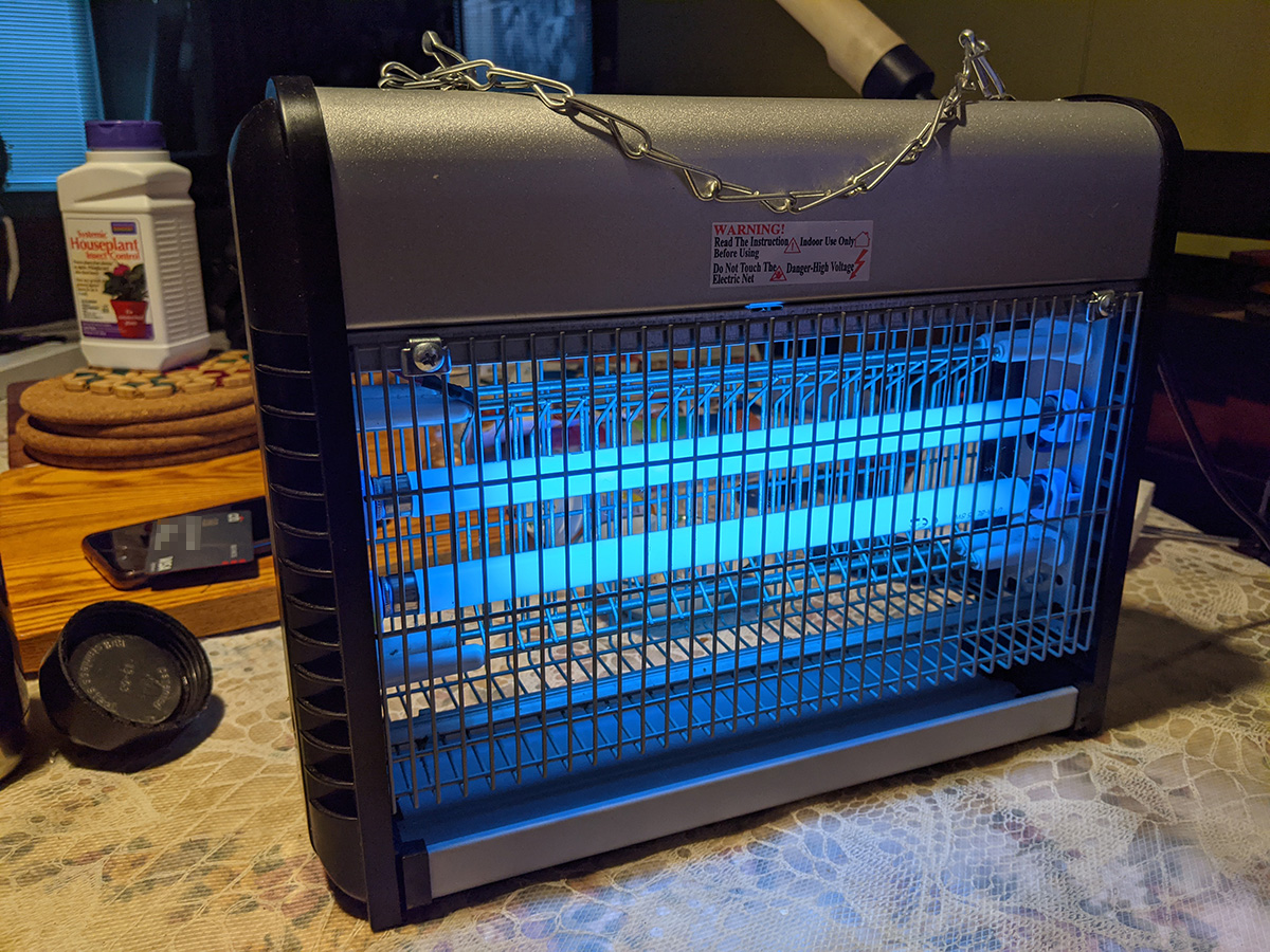 after dinner we installed the new UV fluorescent lights that came for the bug zapper. it worked, meaning there was nothing wrong with the