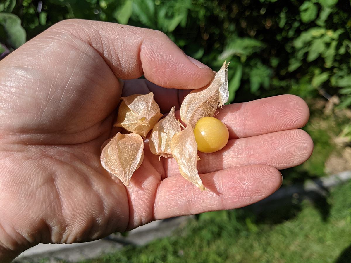 true to their names, when ground cherries ripen, they fall to the ground. in fact, the ones on the ground are a lot sweeter than the ones collected from the branches. their husks also make pretty skeletons when discarded on the lawn and cured by the elements.
