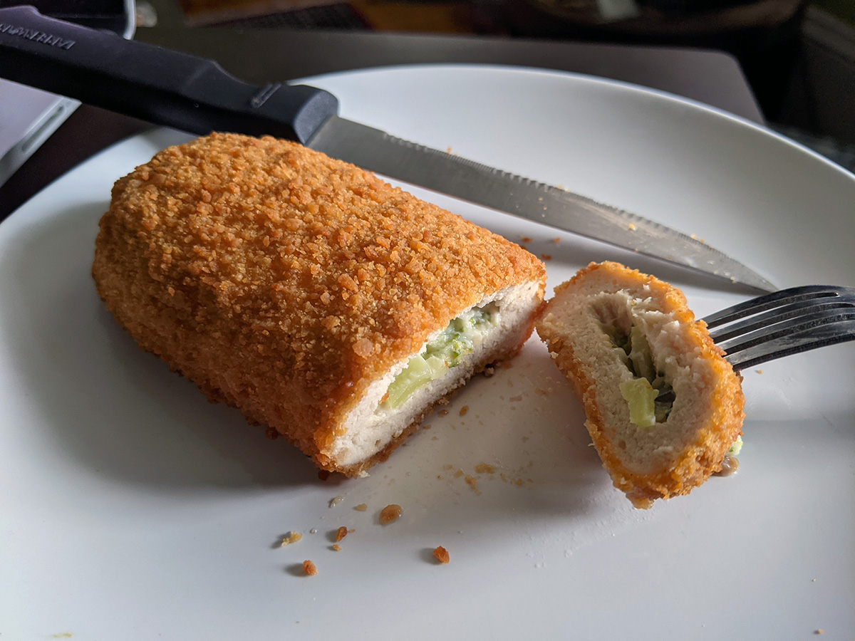 for lunch i heated up a frozen chicken bake in the oven, as i continue to eat as much as i can from the fridge.