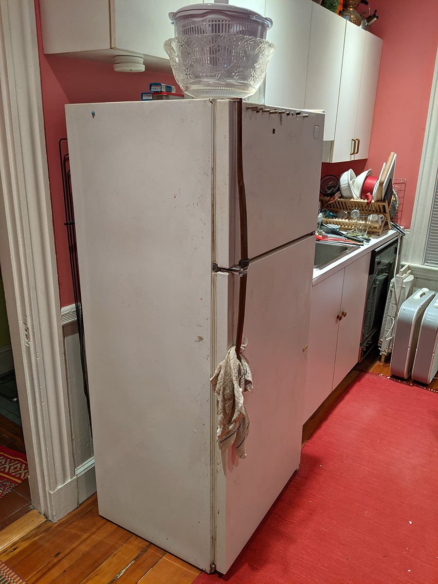 i spent most of the day cleaning the house, in preparation for the refrigerator deliverymen scheduled to come on tuesday. i cleared out a path for them, moving my foyer table and my living room side table. before they come i'll also roll up the rugs. i removed everything from my fridge exterior, including postcards, christmas cards, business cards, recipes, keychains, novelty magnets, and various other momentos and documents.