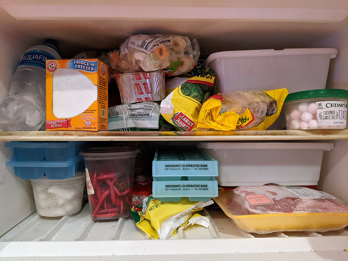 while that was going on i was also doing a load of laundry and opened a few windows to let in the cool breeze. i didn't start cleaning the inside of my fridge, but instead cleaned out a few items from my cupboard. i have old boxes of near east rice mixes that expired in 2007/2008. i always thought rice can last forever, but i opened one of the boxes and there were some pantry moth poop, so i decided to throw them all out. i also had old instant cake and cookie mix, also of similar vintage, i tossed those as well. i also continued making ice cubes for the coolers, for when i empty my old fridge on tuesday.