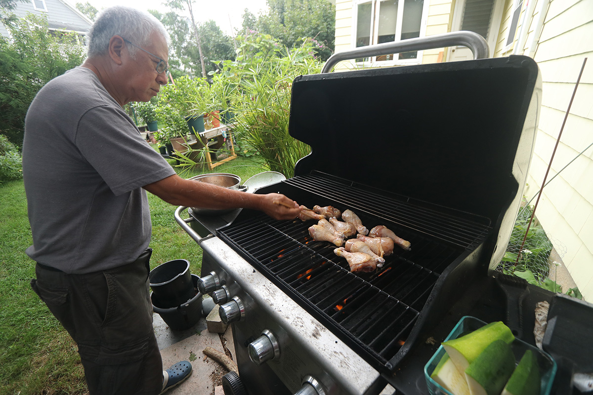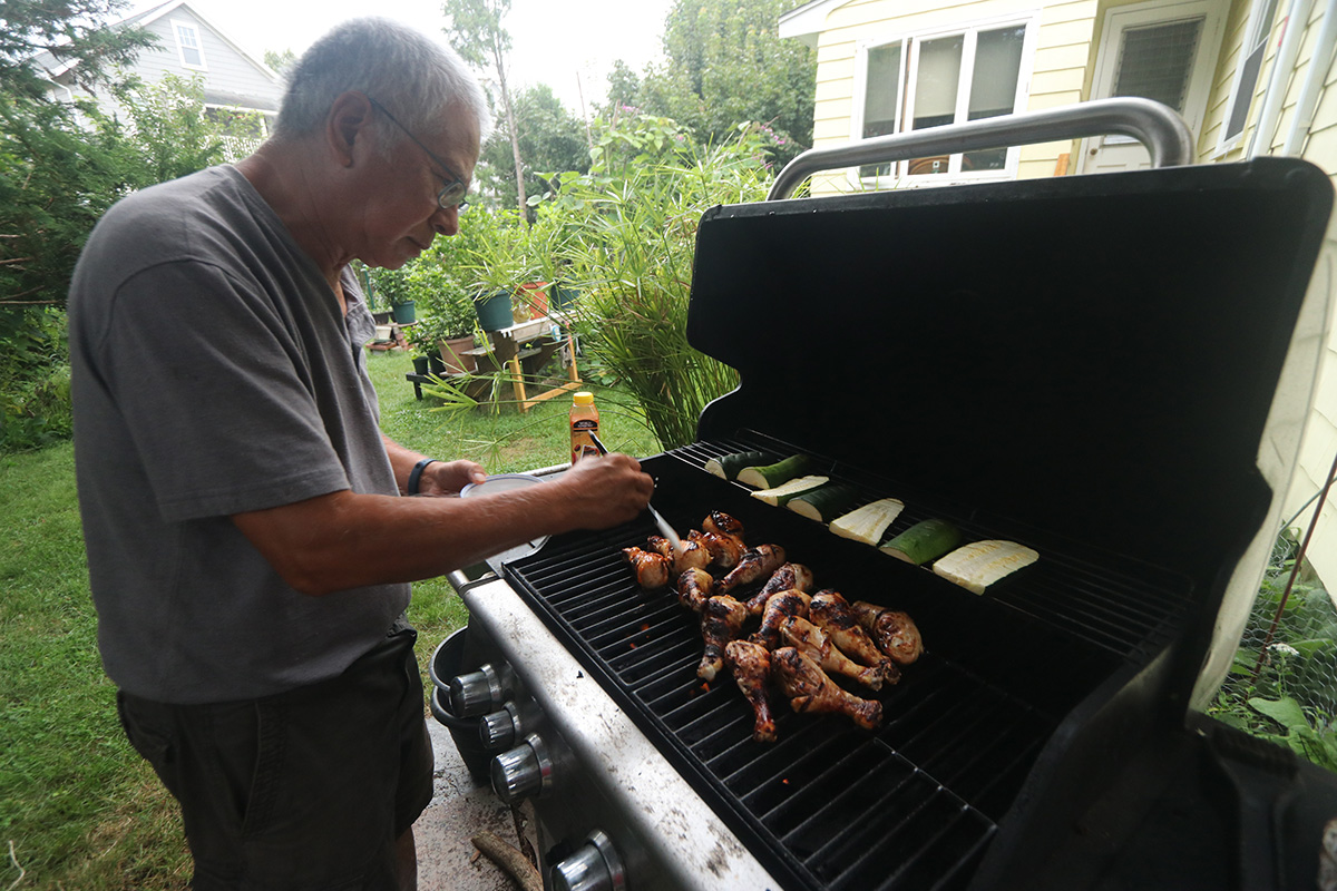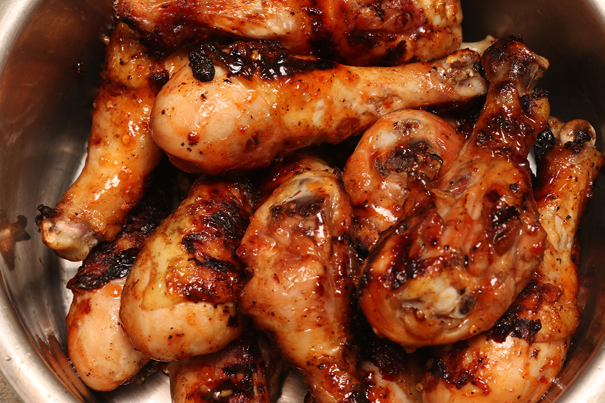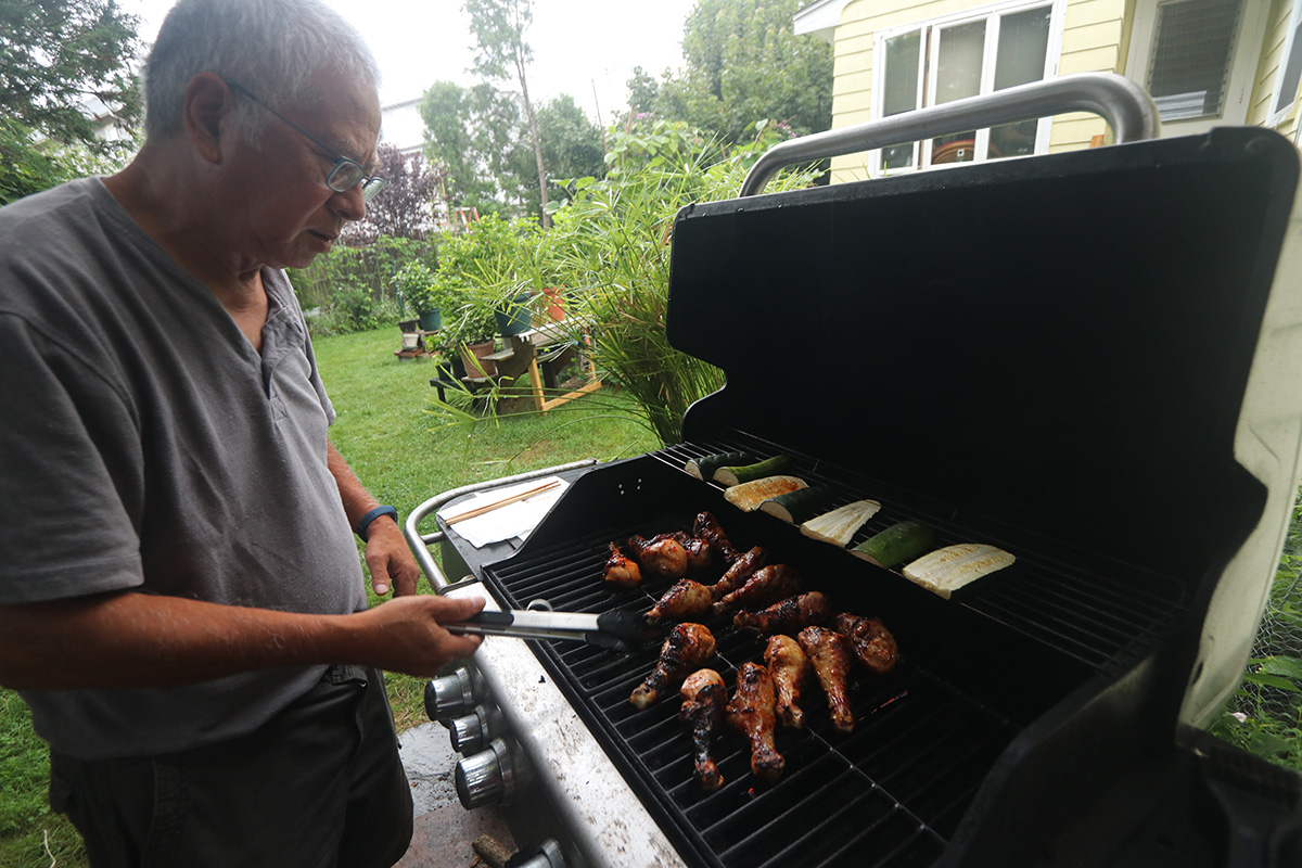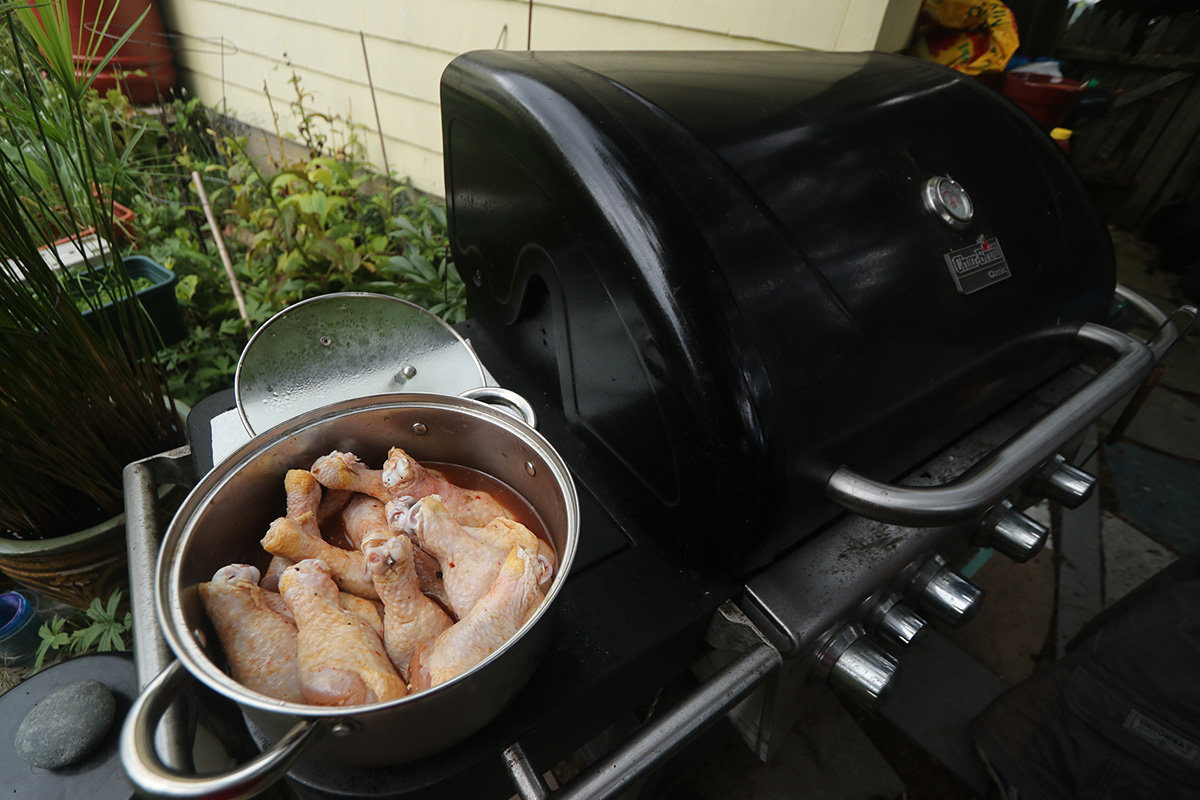 we grilled some homegrown zucchinis but they tasted bland. my mother made some pickled radishes with the ones i gave her today, half of which had already gone bad because i bought them 2 weeks ago. my father slathered some sweet and spicy sauce onto the drumsticks and cooked them on low heat before bring them inside.