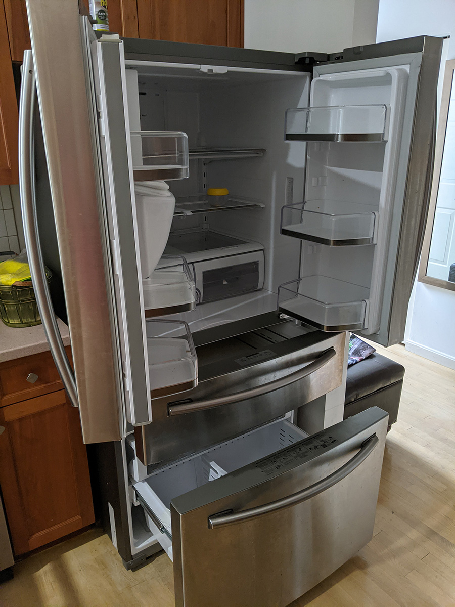 home depot called me today, an automated message telling me my fridge delivery window tomorrow would be from 11am to 3pm. they'd tried texting me earlier, but because i didn't respond, they called. later they also sent me an e-mail confirmation. it's still a little hard to believe that by this time tomorrow i'll have a new fridge.