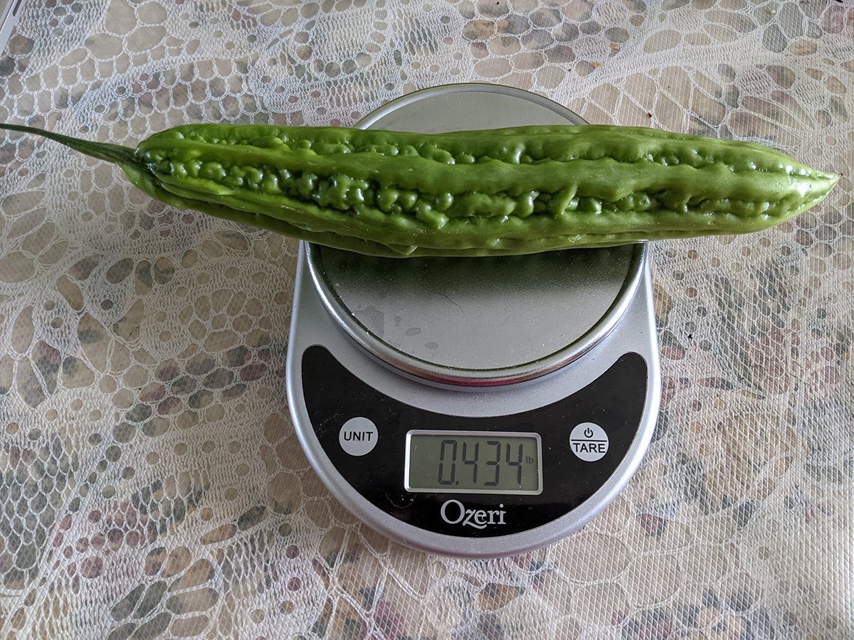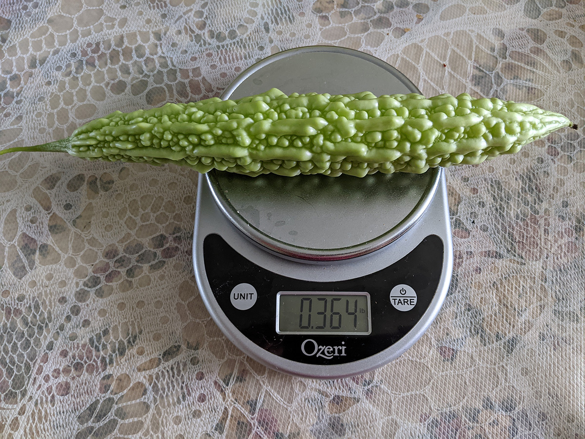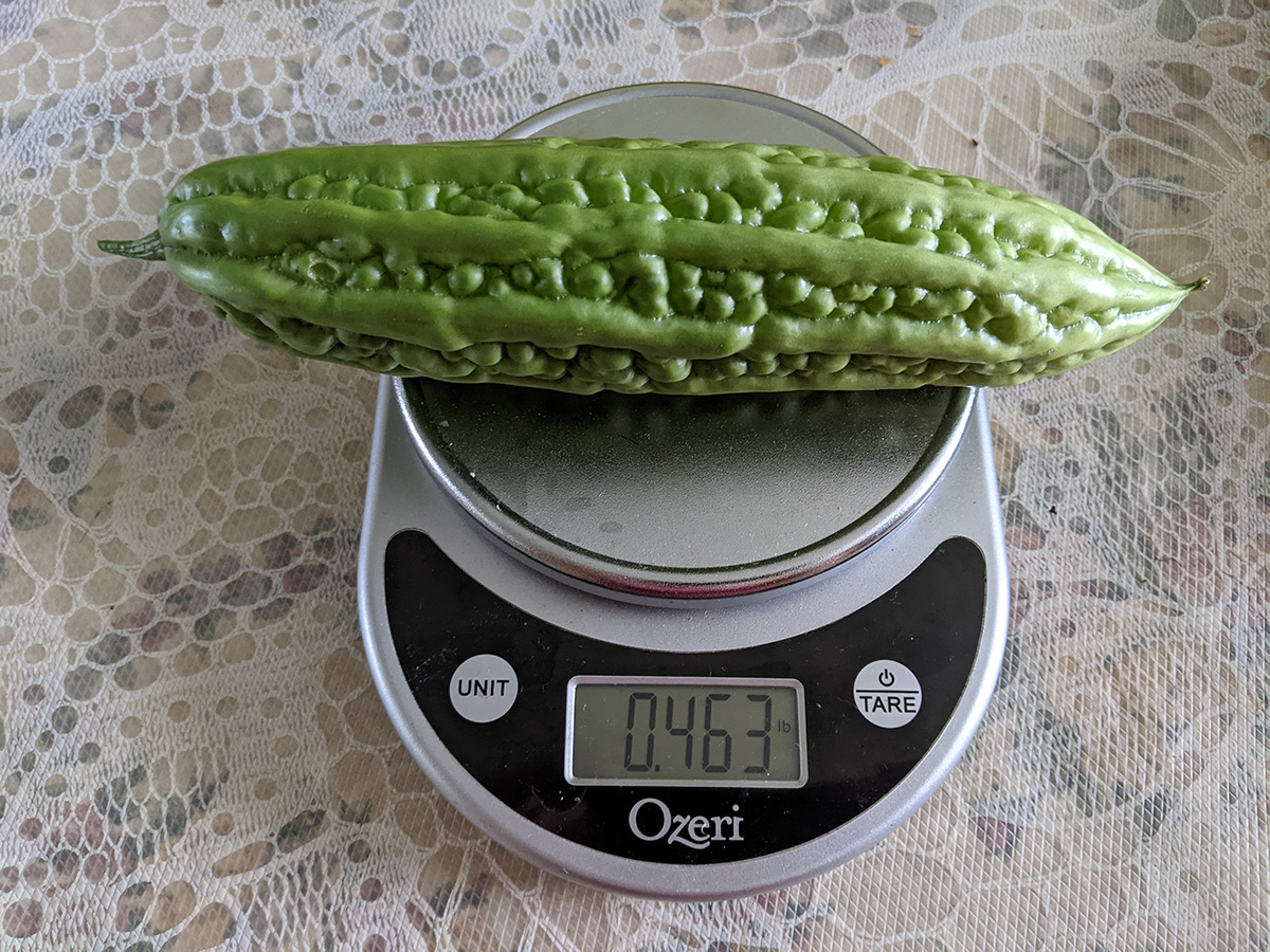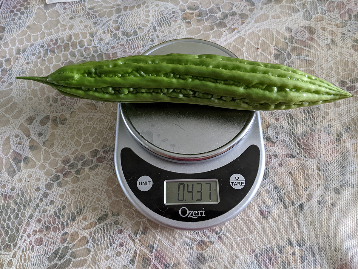 my parents harvested half a dozen more bitter melons. the largest one was nearly half a pound while the smallest one was a quarter of a pound.