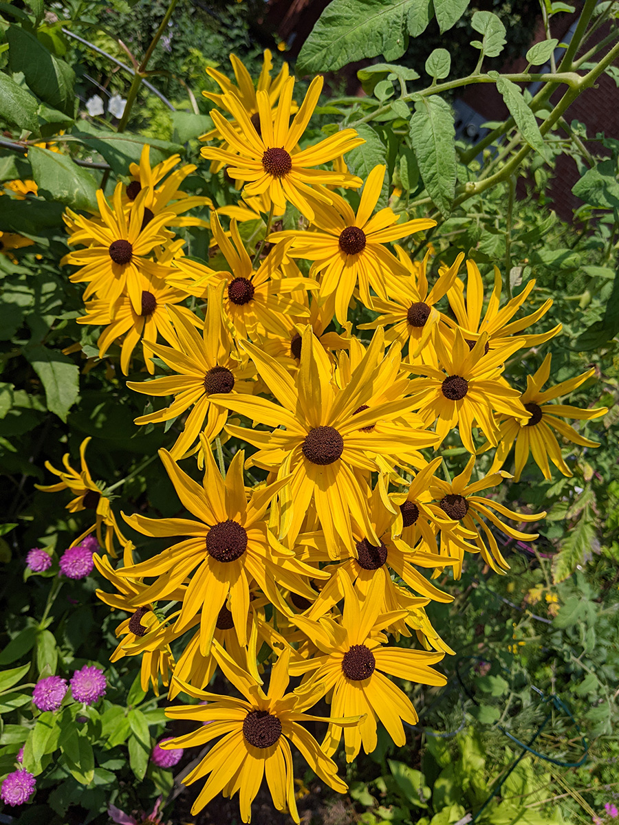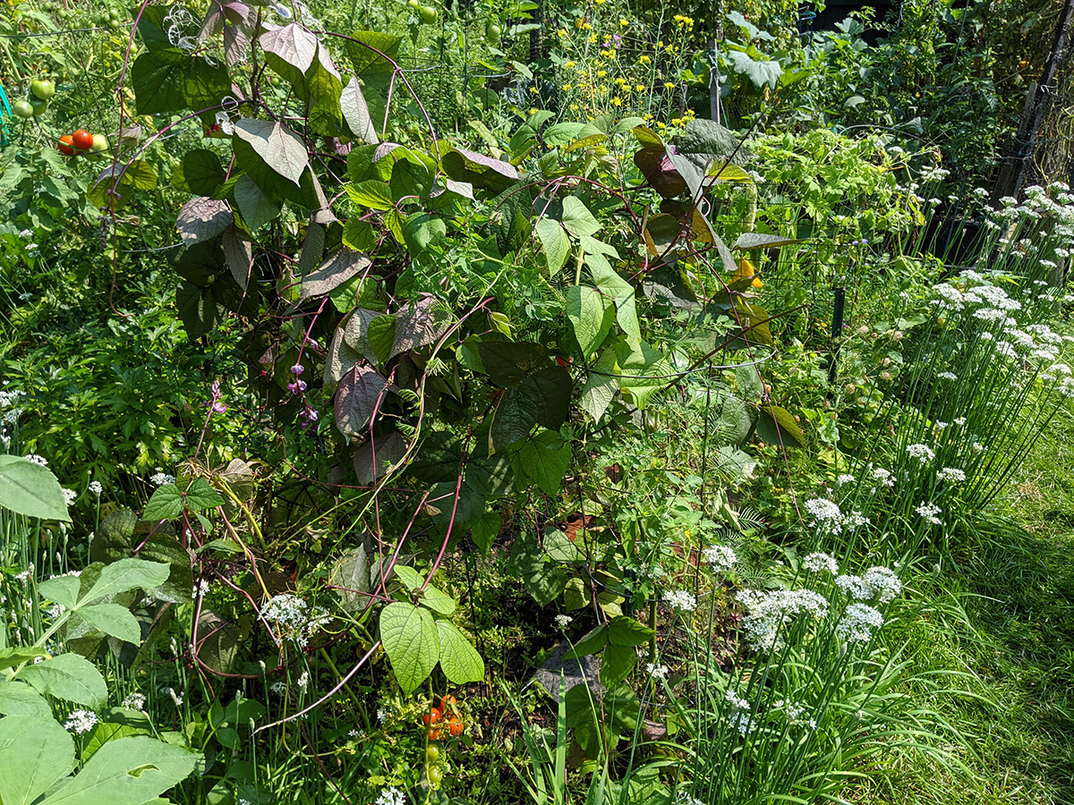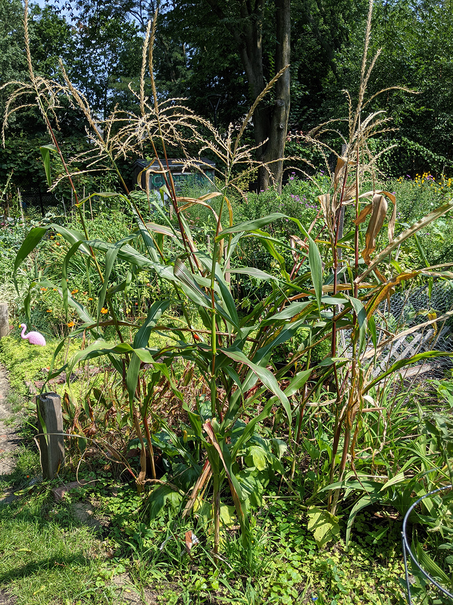 i went down to the community garden in the late morning to check on my plot. i haven't visited in more than a week, it'd been so rainy i haven't had to water. i wore jeans because i didn't want to get mosquito bites. it was warm but wasn't uncomfortably so, although i wouldn't want to be working outside in pants. i had to run back to the house after a quarter way there when i realized i forgot my phone.