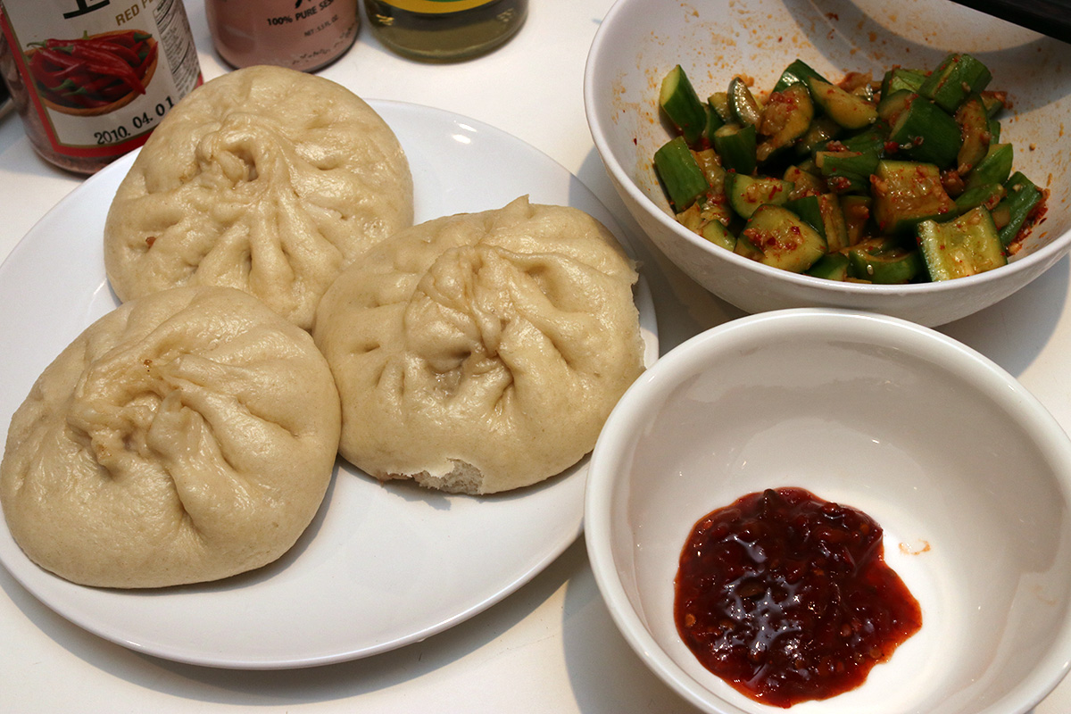 so was it hot? yes, but once you surrender yourself to the heat - knowing that you're going feel warm and be sweaty - it gets a lot easier. just imagine the humidity as a warm safety blanket engulfing you. while i was at TJ my father called asking if i was hope so he could stop by and check out the new fridge. i made it home but didn't have time to call him before he showed up unexpectedly, bringing some meat buns as well. he saw the fridge and agreed that it needs to be shimmed properly, and not with cardboard as they're too soft a material and will make the fridge bounce unnecessarily.