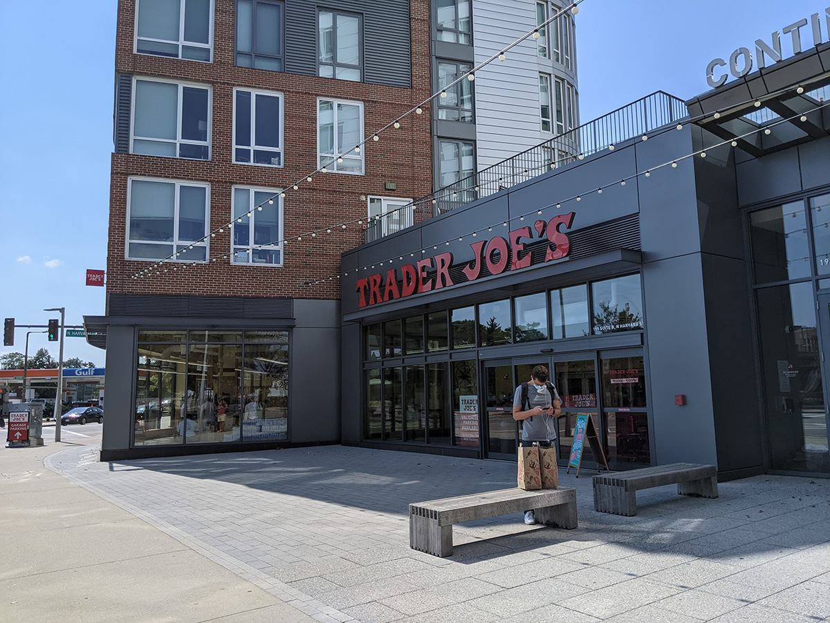 next i went to the allston trader joe's, i wanted to check if they had ube ice cream. in order to bike there i had to cross harvard square. just my luck that today also happened to coincidence with first year students moving in, so the place was crowded with people. when i made it to TJ, it too was crowded with newly arrived college students. i actually like the annual influx of fresh young people, makes boston not so staid. young people bring a certain energy (and i'm not just talking about the coronavirus) and they're a boom for the local economy. unfortunately they didn't have ube ice cream (there wasn't even a tag for it), better luck next year. instead of bought some plums, some incan corn, a bag of sour jelly candy, and a $5 bottle of moscato sweet wine.