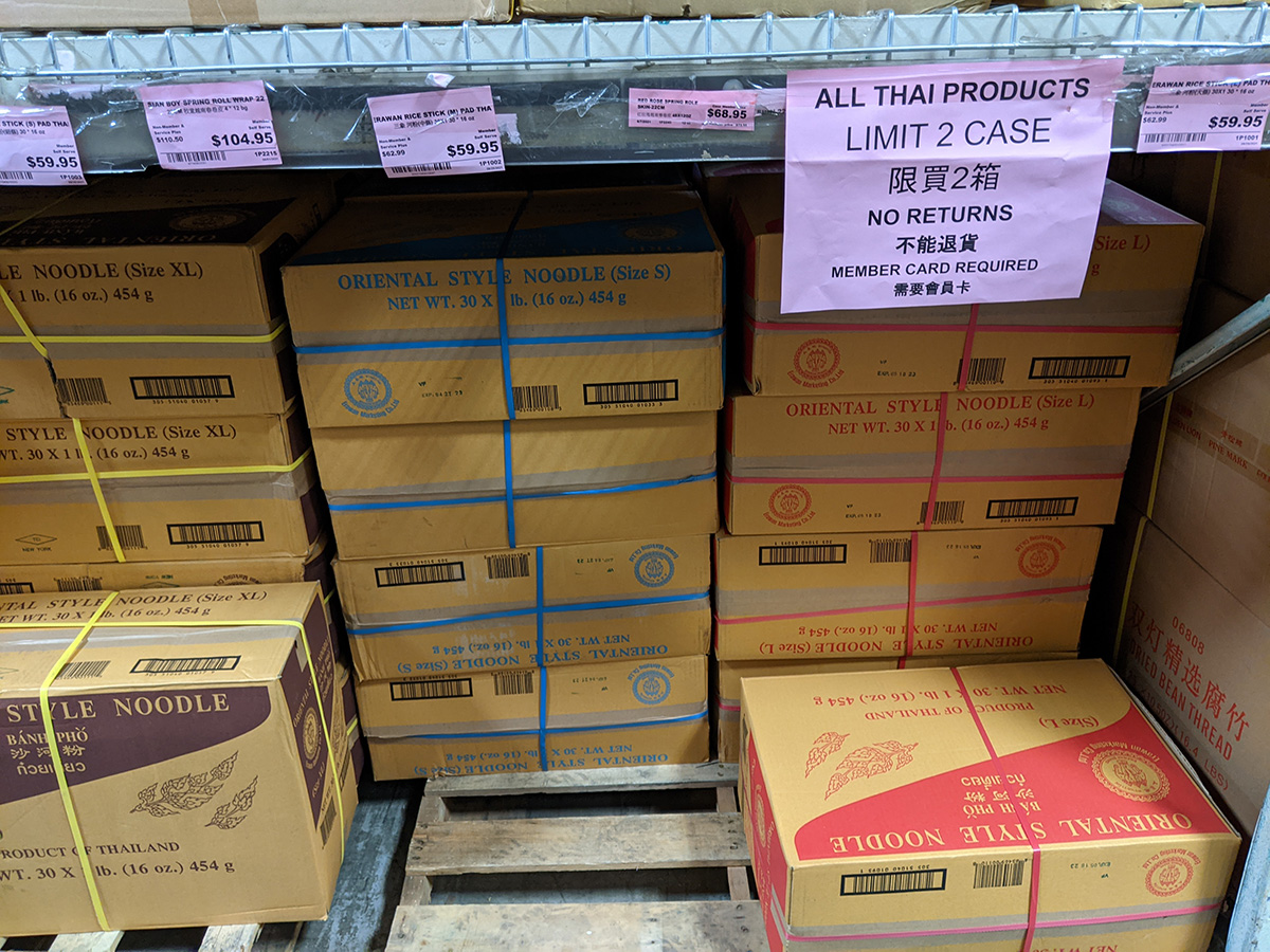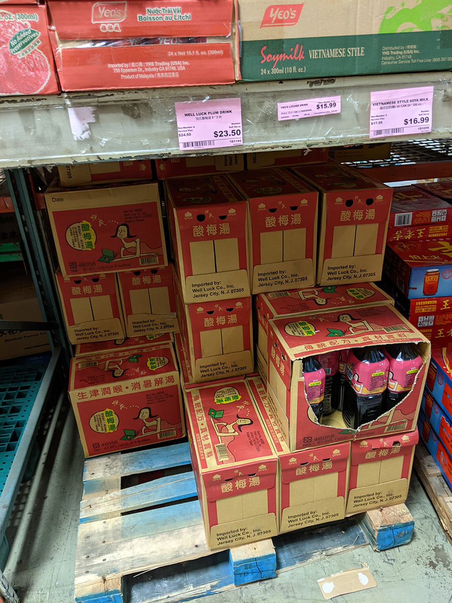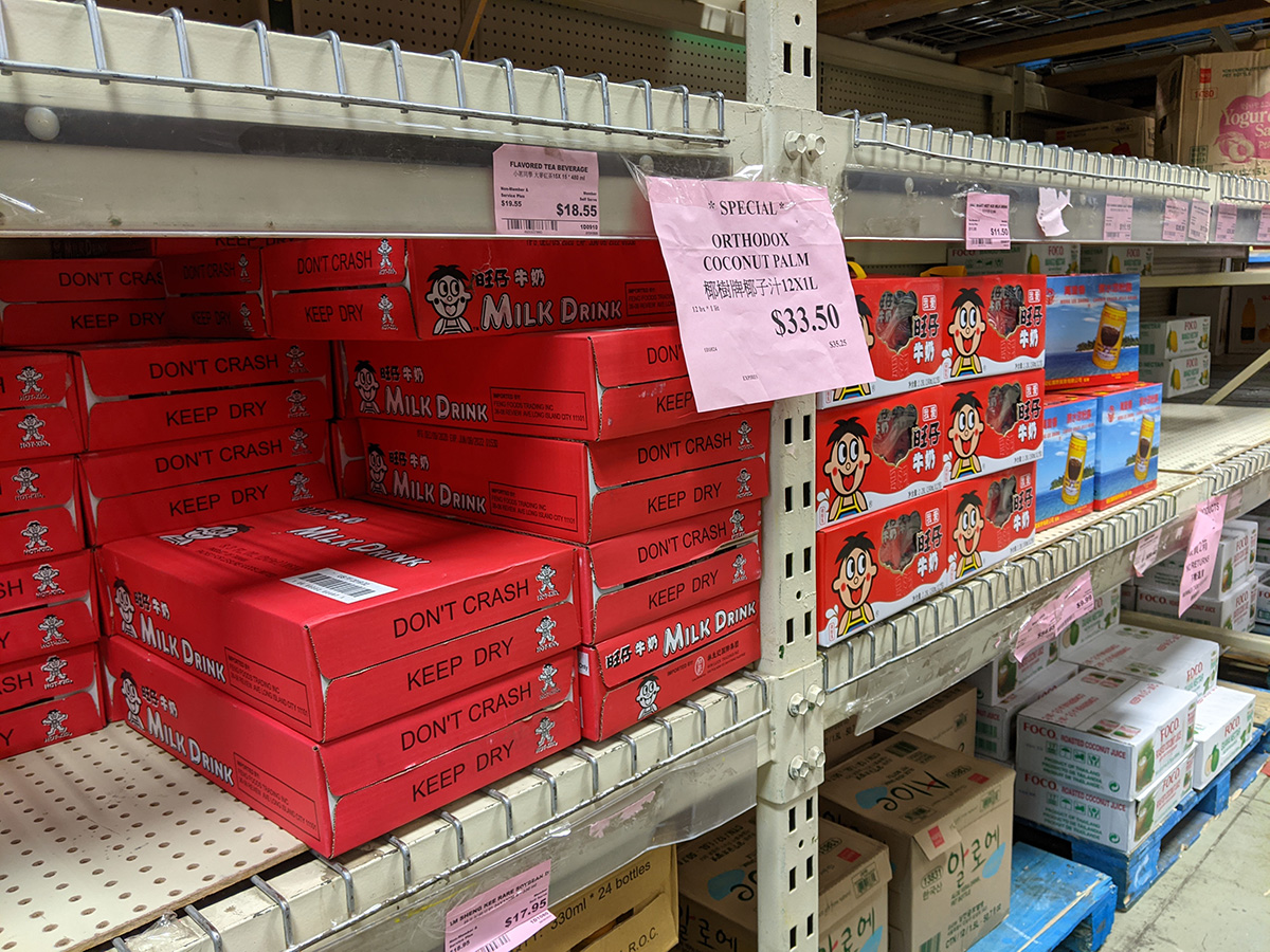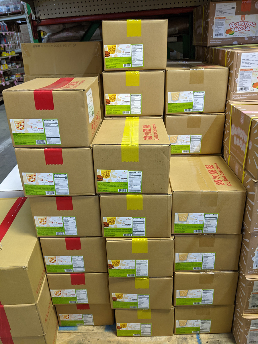 my father followed the checklist my mother gave him as we quickly collected all the supplies we needed. at one point my father asked one of the workers if they had anymore lavender milk tea powder. he was a hispanic guy and didn't know their inventory very well, so he asked one of the chinese workers, who told us they didn't have any. but when my father looked around, he saw an unopened box of lavender powder. it was the hispanic guy who opened the box for us, the chinese worker was zero help and even gave us false information. my father also bought a container of mango-flavored bursting boba ($21) to try out. finally, foodpak actually had 20 oz. clear drink cups in stock at $120/box (1000 cups). we ordered some online a few weeks ago but they seemed to be backordered, so we bought a box as the cafe's supply is running out. we also got matching lids for $40/box.