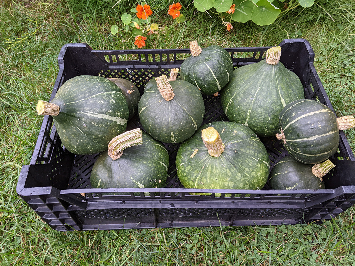 my father and i harvested about 60% of our buttercup squash after my parents discovered an old on-the-vine squash had burst open. i didn't have a change to weigh them so i won't know which one is the biggest until tomorrow. september is typically when we start harvesting our squash anyway. this way they'll have some time to cure.
